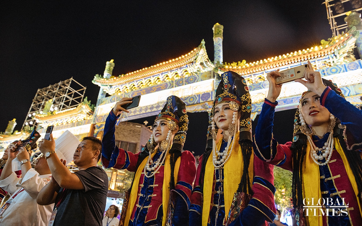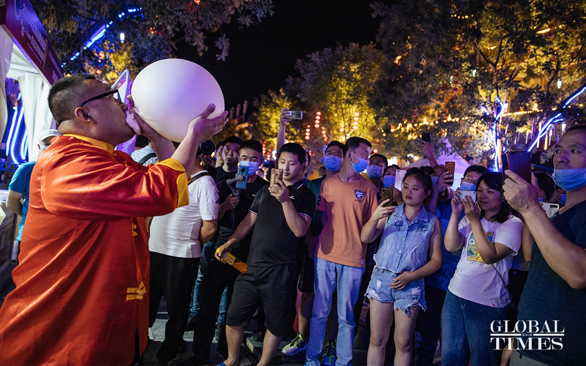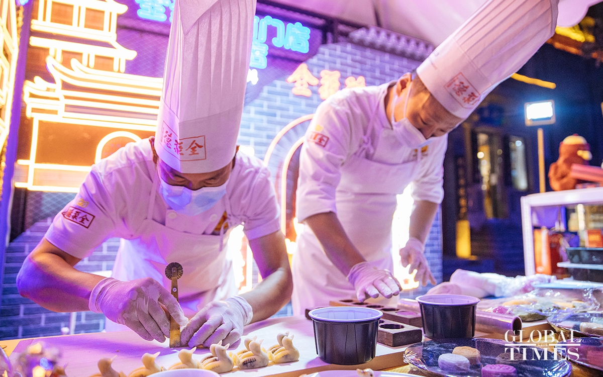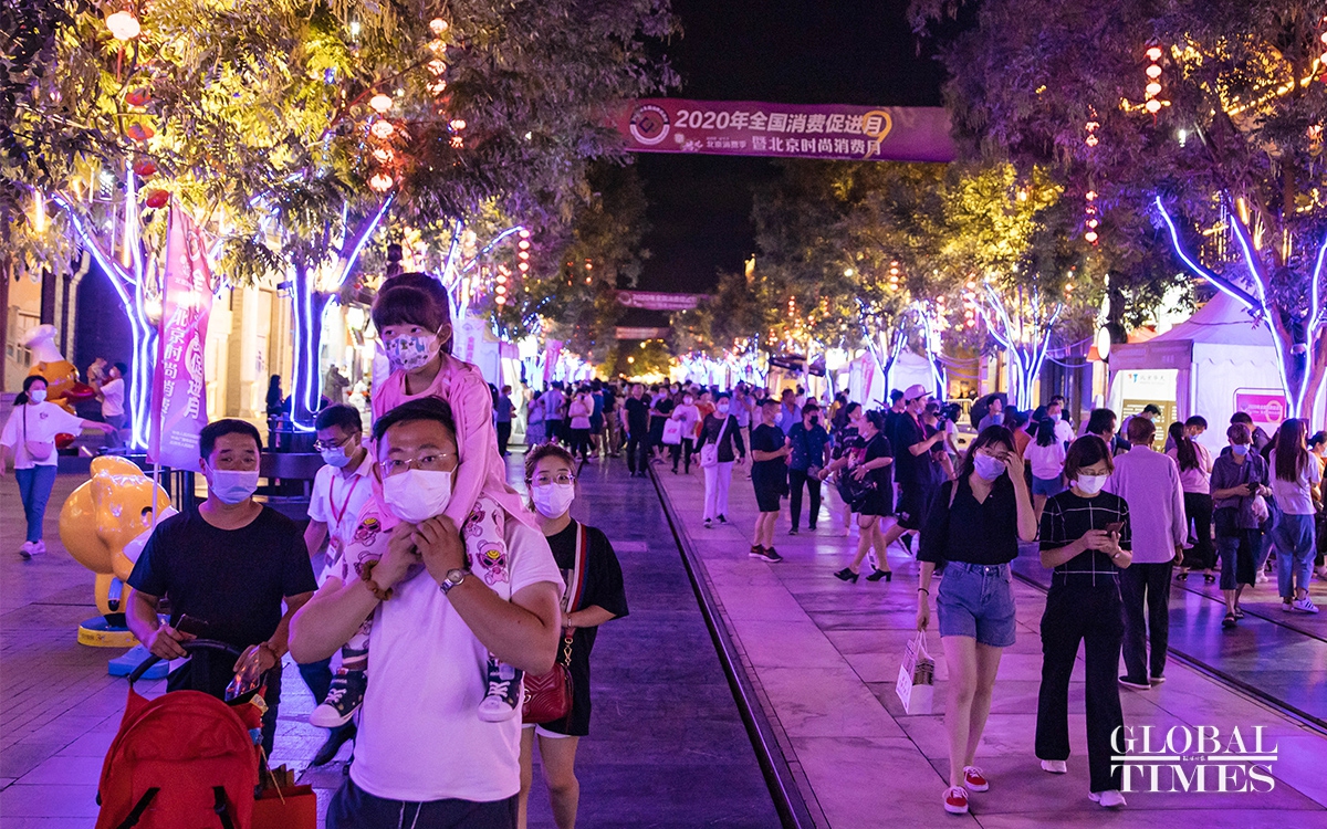 September is this year’s month for promoting consumption nation-wide and the month of fashion consumption in Beijing. During the opening ceremony, Beijing connected with the cities of Tianjin, Shanghai, Wuhan, Chengdu and Chongqing to complete product promotion with ceremonies seen live from each city. Beijing started the first show with Beijing Fashion Week and organized many activities that covered Beijing's food and culture. More than 30 national-level poverty-stricken counties' products and traditional brands in Beijing and Wuhan will have their promotion activity at Qianmen pedestrian business street for a week. (Photos: Li Hao/GT)
