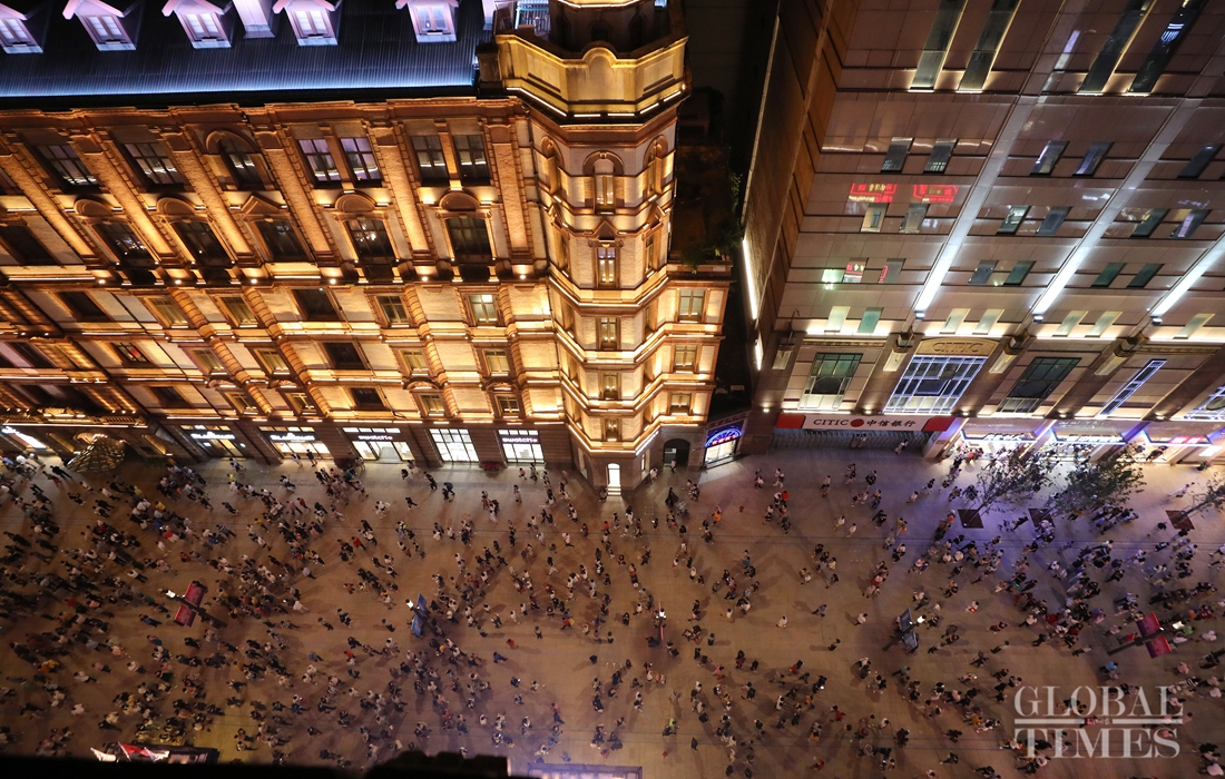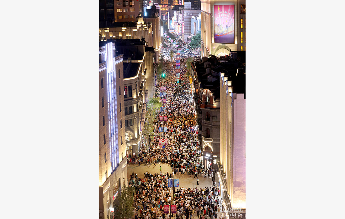 Tourists hang out at Nanjing Road, one of the busiest shopping streets in Shanghai, as the Shanghai Tourism Festival kicks off on Saturday. Nanjing Road has recently gone through an upgrade that links it to Shanghai’s landmark The Bund.