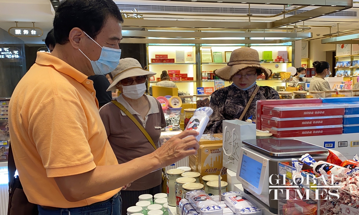 Customers buy White Rabbit milk candies at a food shop in Shanghai’s landmark Nanjing Road Pedestrian Street on Tuesday, the site where Chinese Premier Li Keqiang visited on Monday night before buying three bags of White Rabbit candies for 60 yuan ($8.8). Established in 1959, White Rabbit milk candy — or dabaitu — is an iconic candy brand in China. It is not only sold in China but also Southeast Asia, the US and Europe. Former US President Richard Nixon was gifted White Rabbit candies when he visited China in 1972.