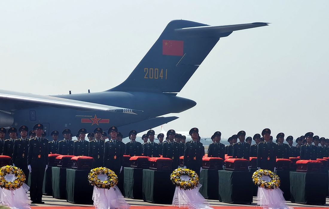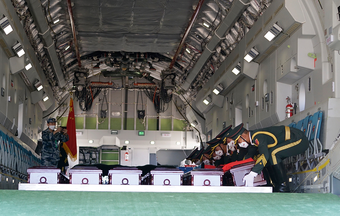 The seventh batch of remains of 117 Chinese soldiers who lost their lives in the Korean War (1950-1953) was returned from South Korea to China on Sunday by military transport aircraft Y-20.