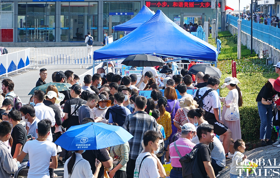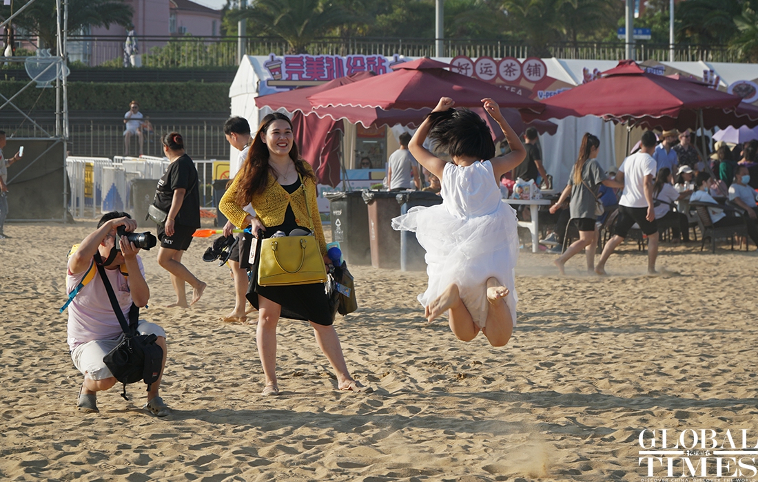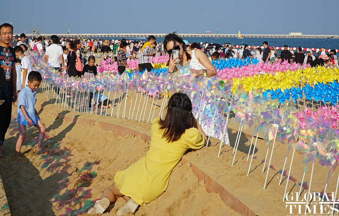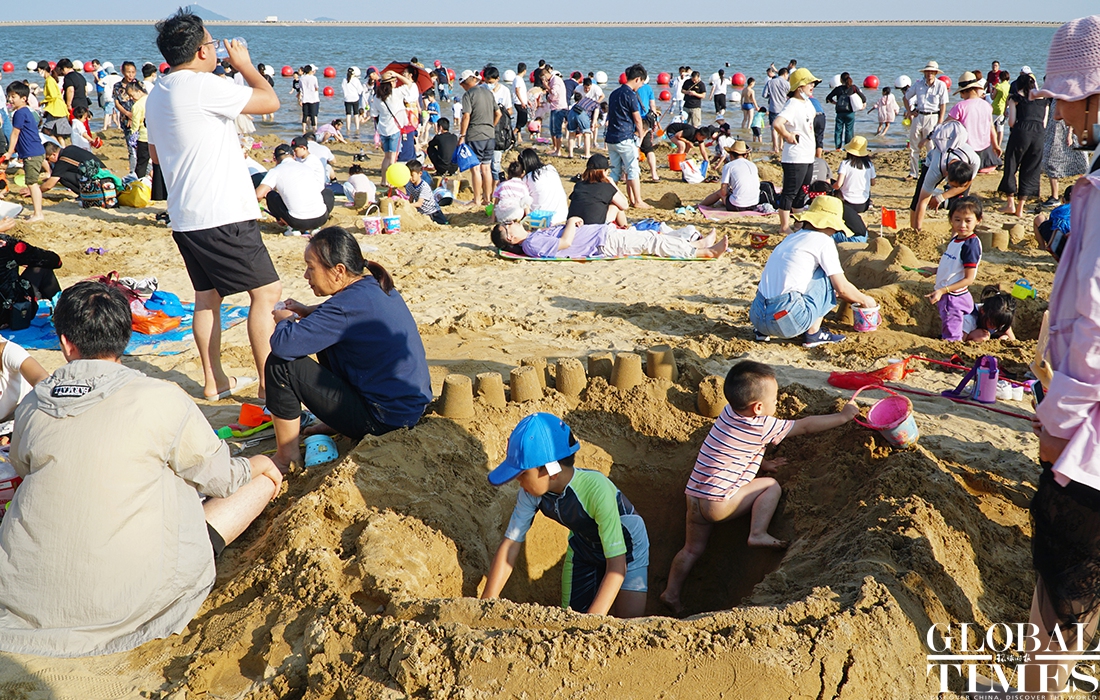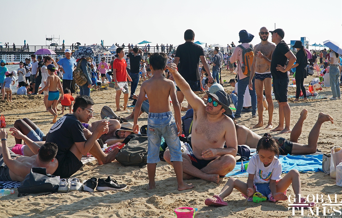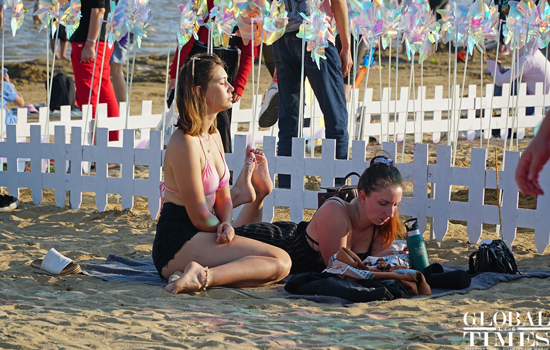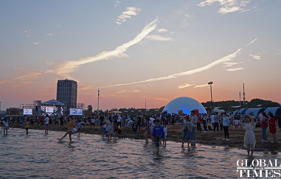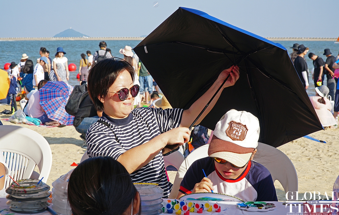 Jinshan City Beach in Shanghai kicked off a four-day event on Oct 2, where citizens can enjoy sunbathing, barbecue and various shows. Photos: Lu Ting/GT