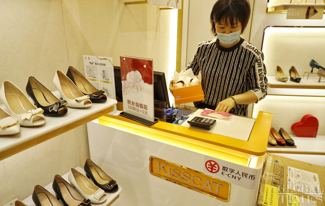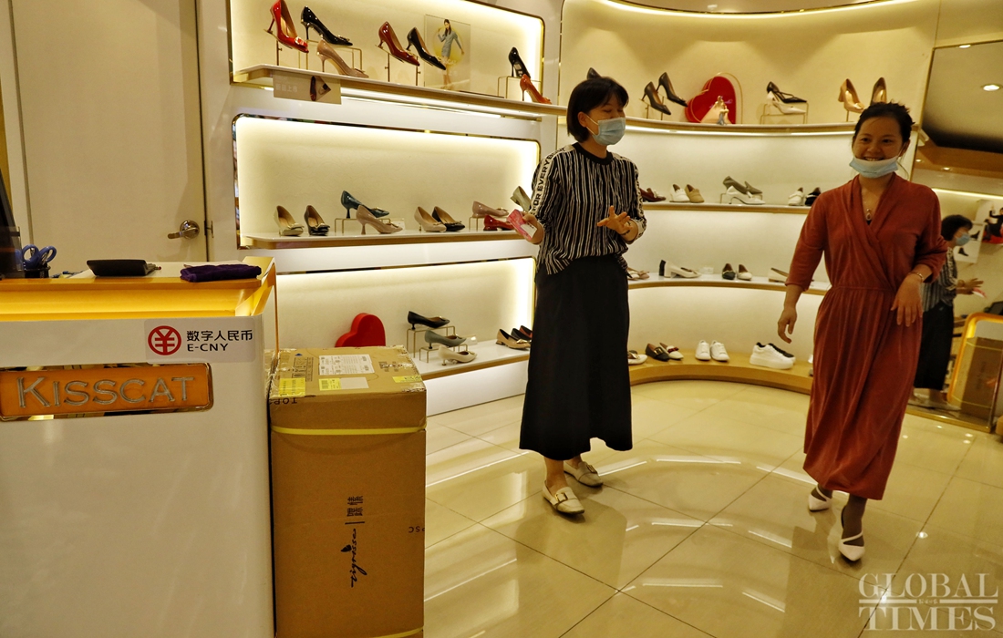 Residents who received "red packets" of digital RMB use the money in stores in Shenzhen, Guangdong Province, on Wednesday. The city launched a pilot program to distribute 10m yuan ($1.49m) in the form of digital currency to residents on Monday.Photo:Li Hao/GT