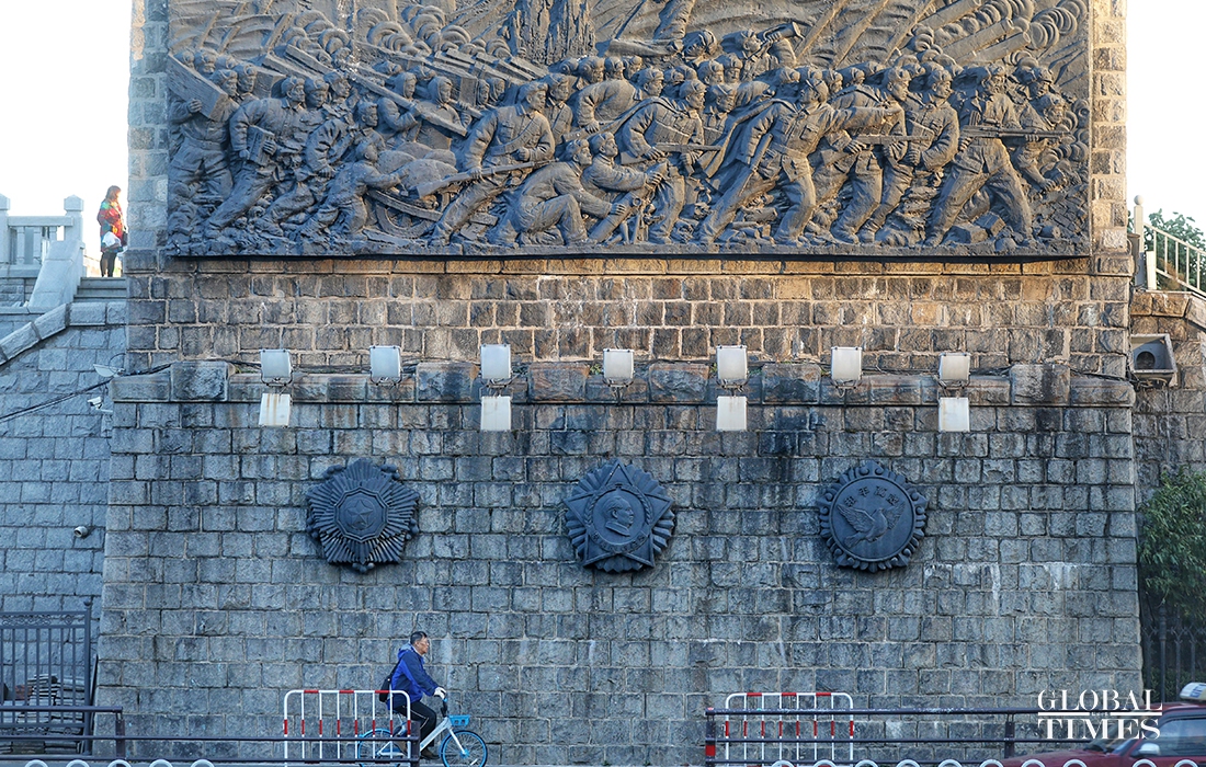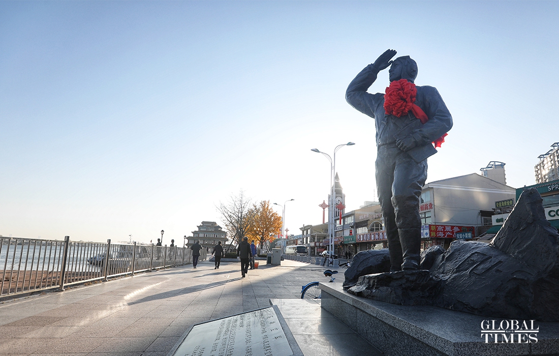Memorials observing the 70th anniversary of the War to Resist US Aggression and Aid Korea can be seen everywhere in the streets of Dandong. (Photo: Cui Meng/GT) figcaption >