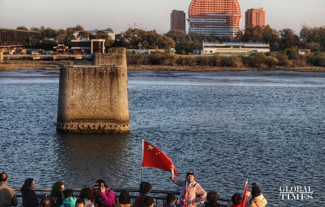 The Yalu River Broken Bridge, which was bombed by the US Air Force in November 1950, and became a witness of history.(Photo: Cui Meng/GT) figcaption >