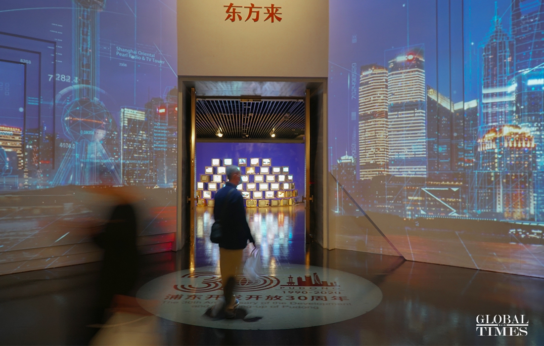 The first arts exhibition to celebrate the 30th Anniversary of the Development and Opening-up of Pudong — "Wind from the East" — kicked off at the China Art Museum on Friday. The show will run through until the end of November, showcasing to visitors the changes in Pudong over the past 30 years.(Photos: Lu Ting/GT)