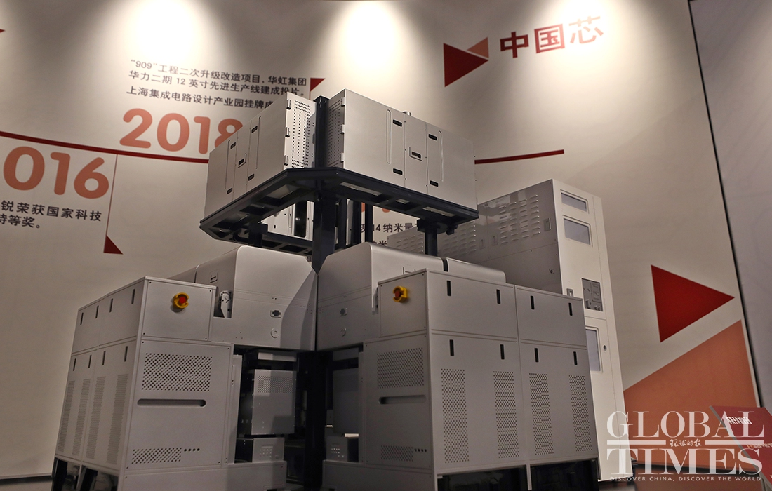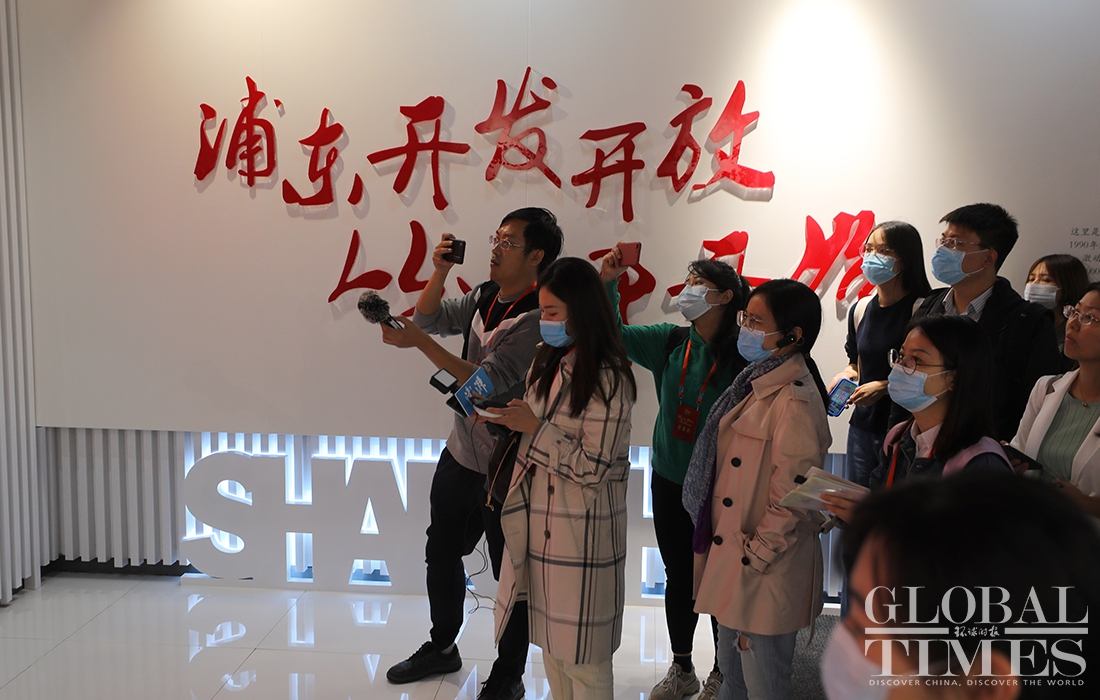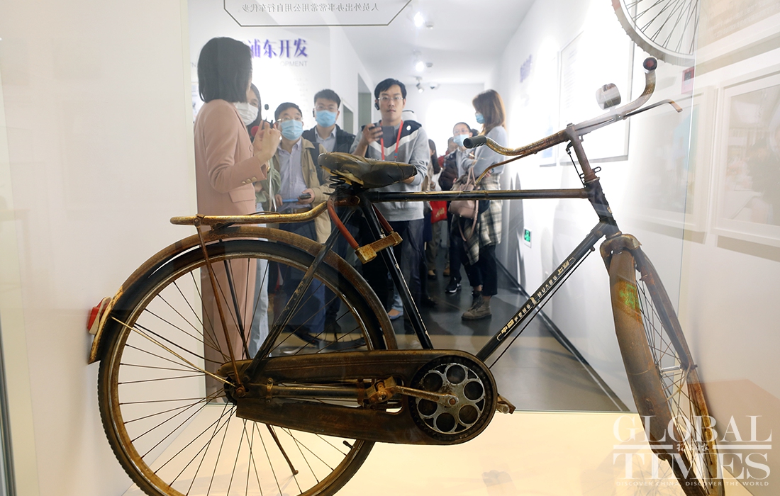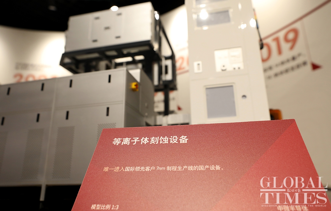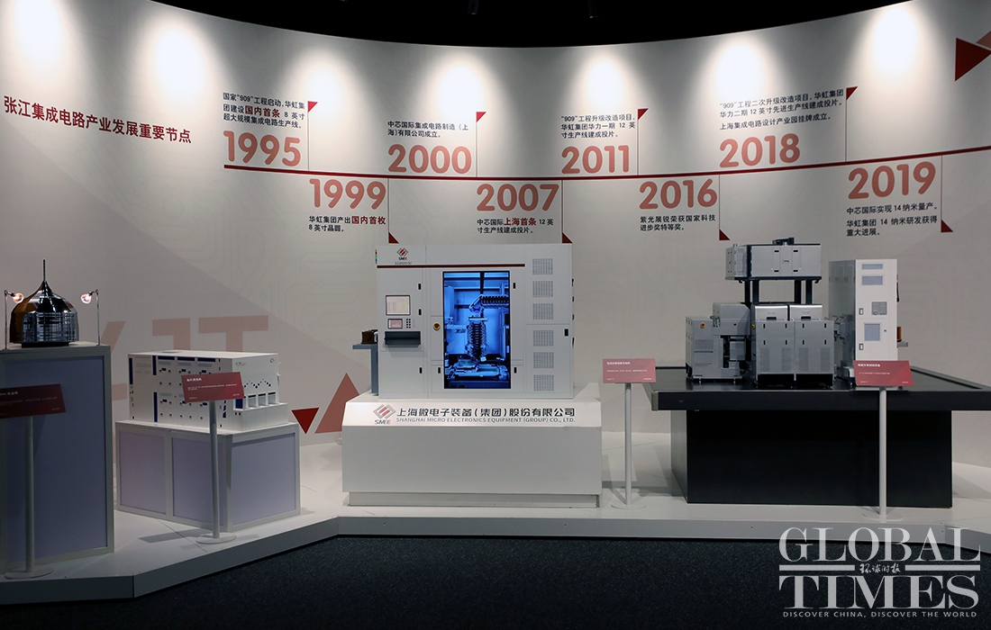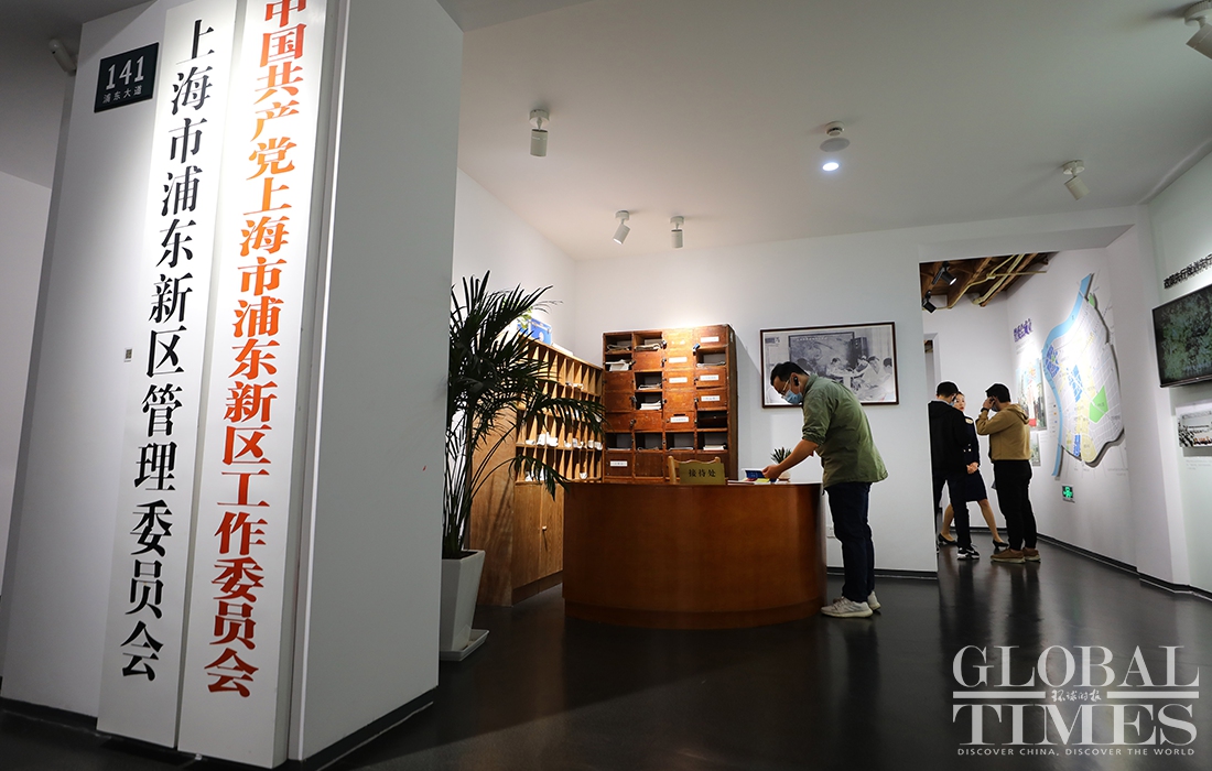 Visitors can find a newly renovated administrative office of Shanghai Pudong New Area, which dates back to 30 years at Pudong Development Exhibition Hall while also be able to appreciate the etching machines capable of producing 7nm microchips at another exhibition revenue themed on high technologies.(Photo: Yang Hui/GT)