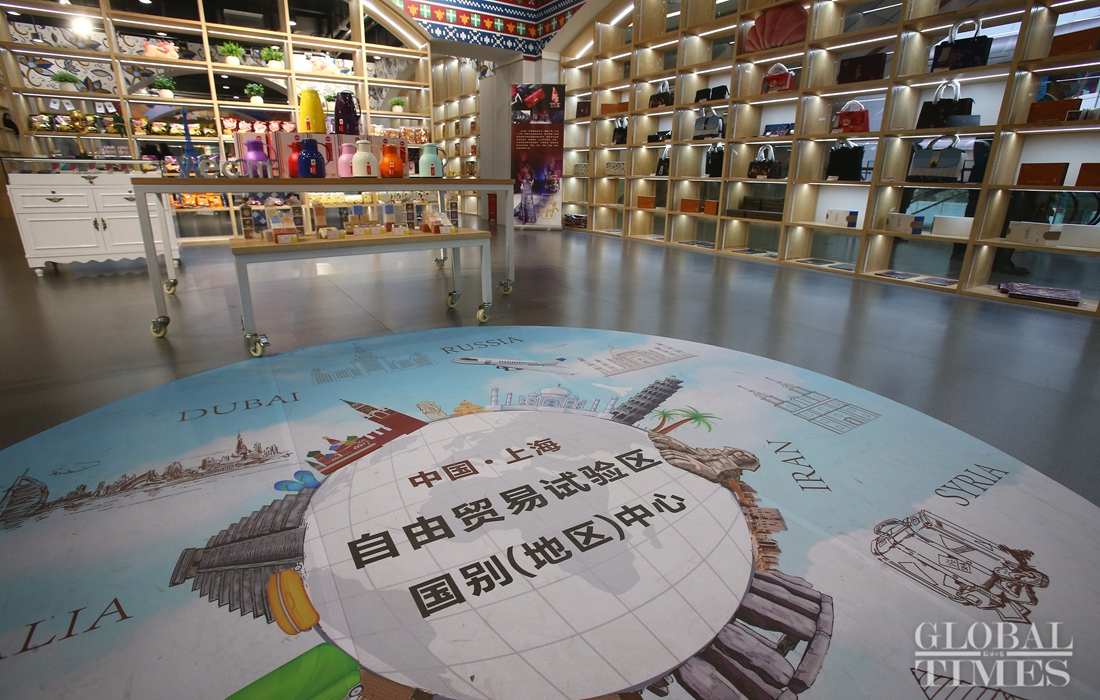People buy products from about 20 countries in a mall at Shanghai’s Free Trade Zone in Pudong New Area on Tuesday, which commemorated its 30th anniversary of establishment this year. People can also shop for imported goods on display at the China International Import Expo here.