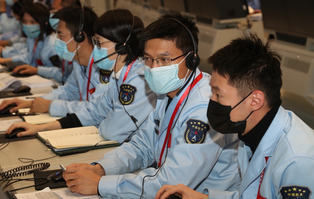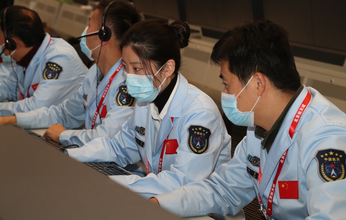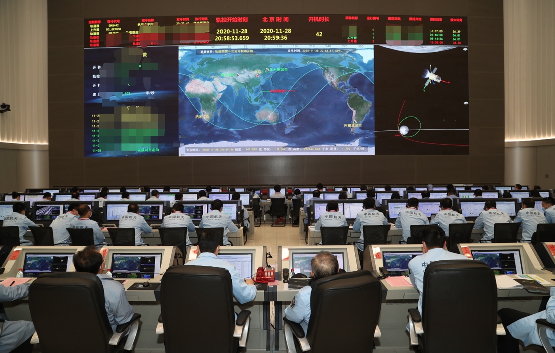 Chinese space engineers watch Chang'e-5 lunar probe carry out a braking maneuver to enter the moon's orbit on Saturday.