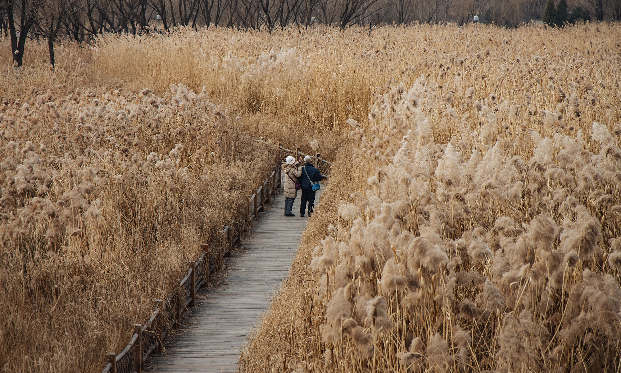 Beijing's Olympic Forest Park carries out reed cutting to prevent water eutrophication