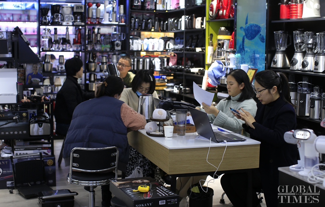 Some foreign buyers were looking for goods at Yiwu International Trade City on Friday. Driven by the resilient demand worldwide, home appliance suppliers at Yiwu International Trade City saw an unprecedented jump in orders from abroad. Some even saw their orders soar by up to 100 percent year-on-year.