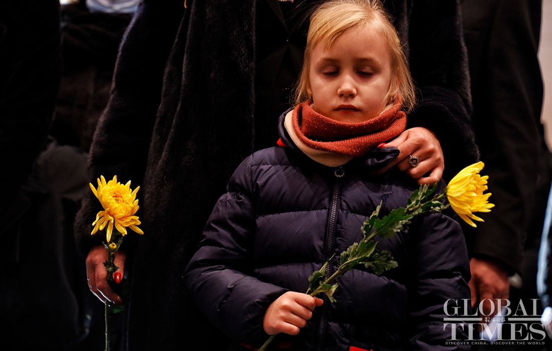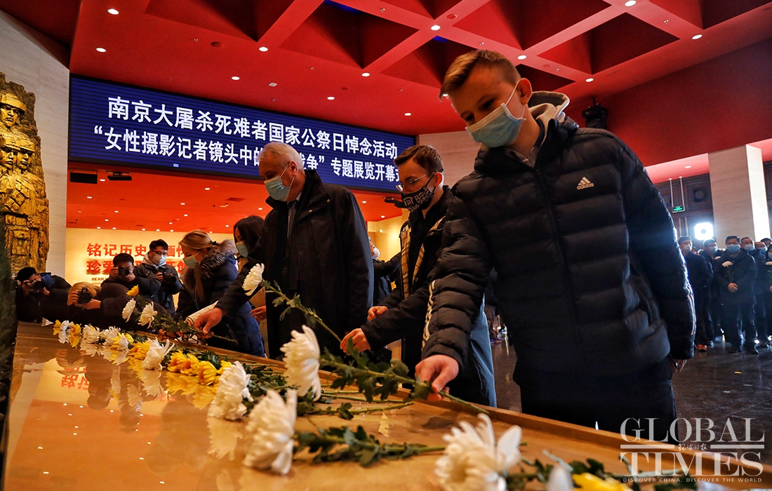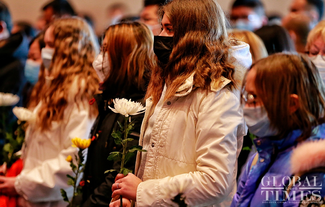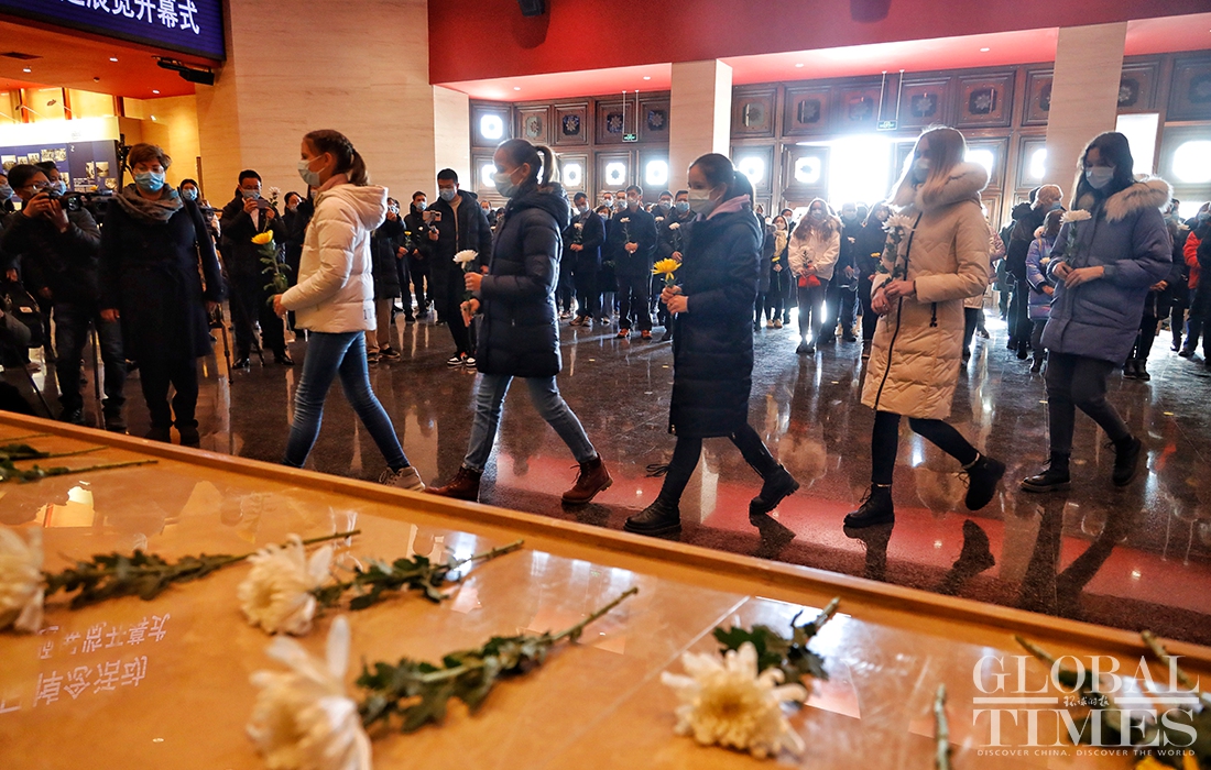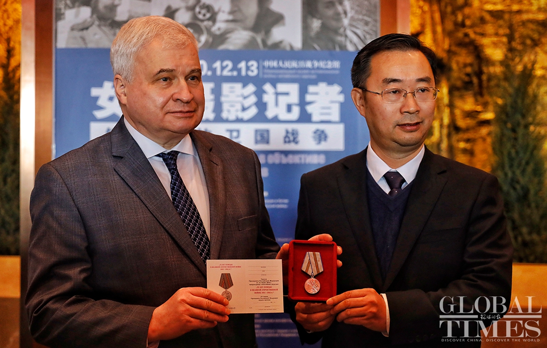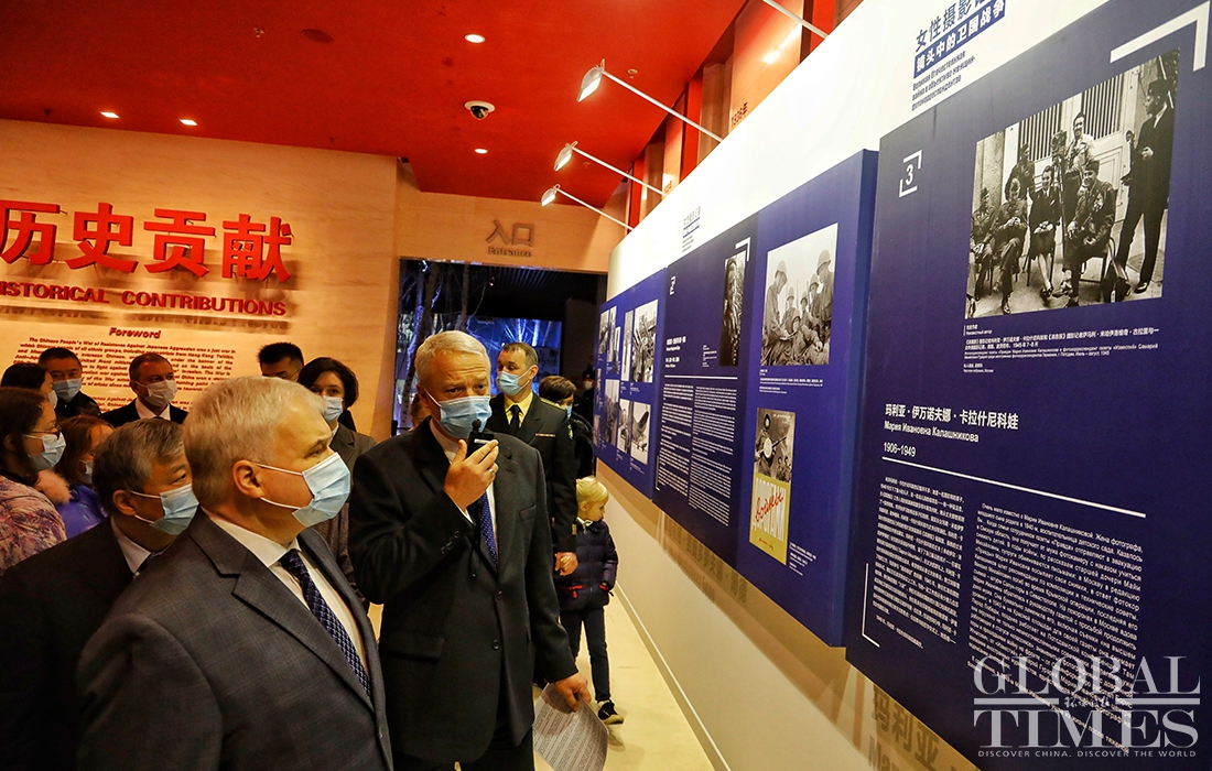 Chinese and Russians attended the exhibition opening ceremony, during which silent mourning was observed and flowers were presented to pay tribute to victims of World War II.