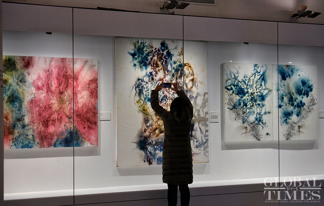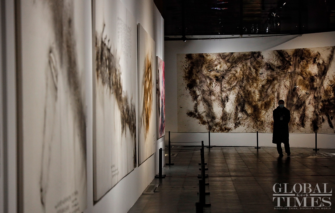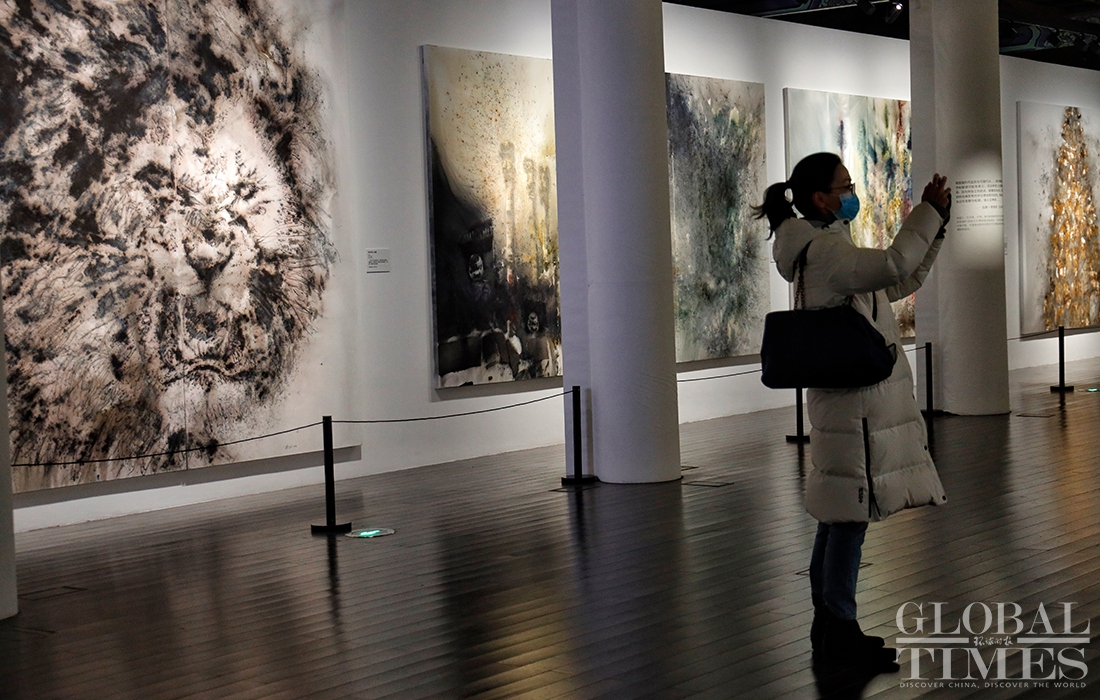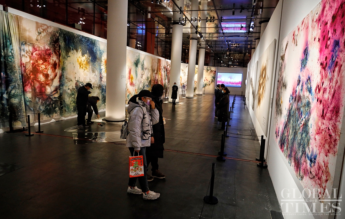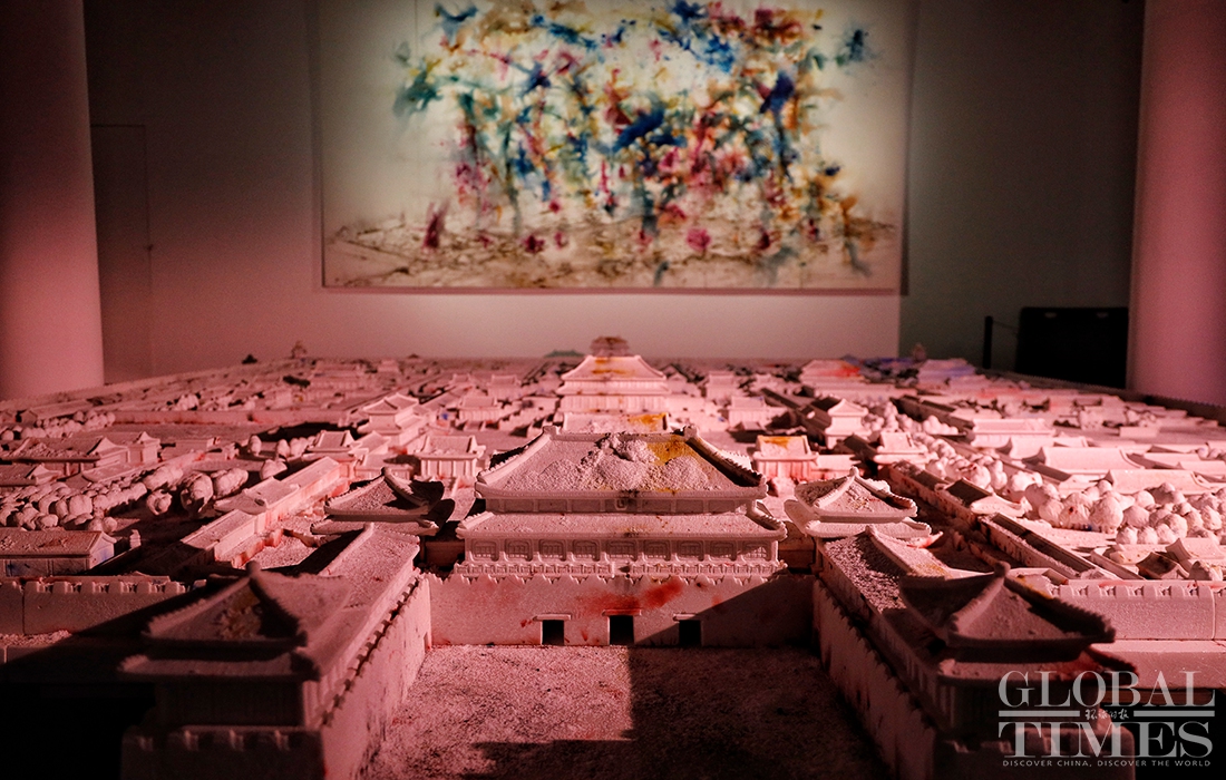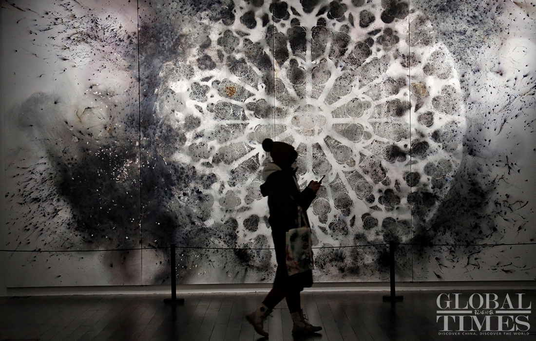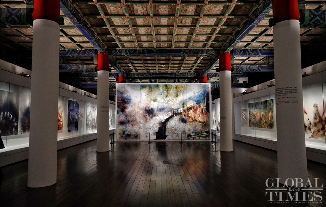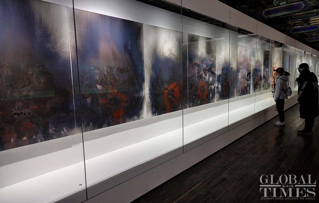 Exhibition "Odyssey and Homecoming", which explores the Forbidden City and the Beijing 2022 Olympic Winter Games, kicked off at the Palace Museum on Monday. A total of 180 artworks by artist Cai Guoqiang are on display to show off traditional Chinese culture and promote the Winter Olympic Games.Photos: Li Hao/GT