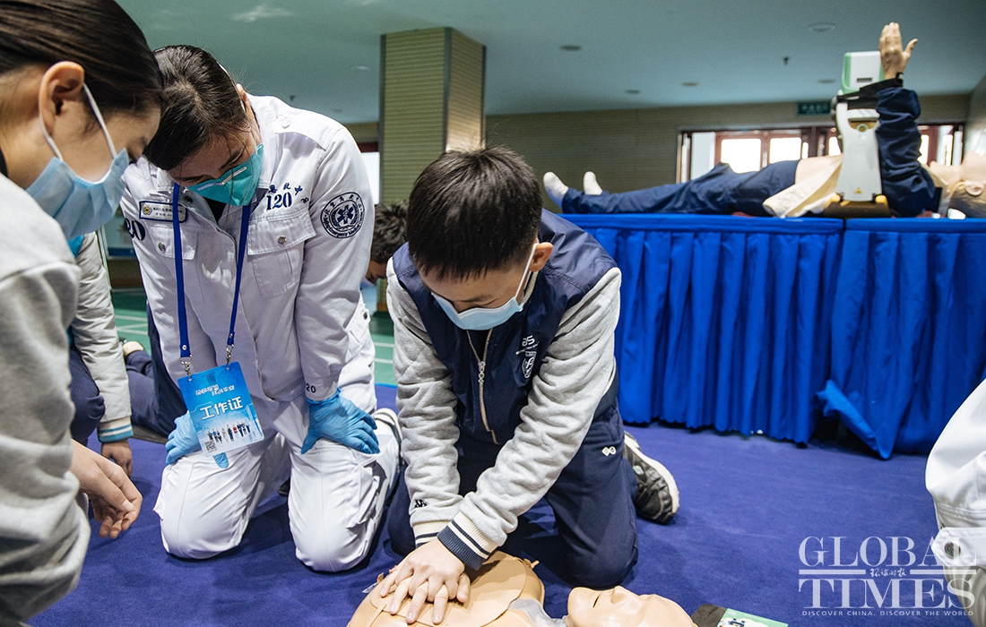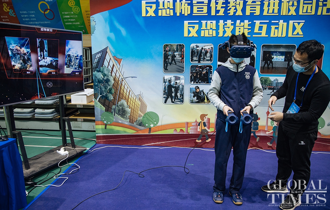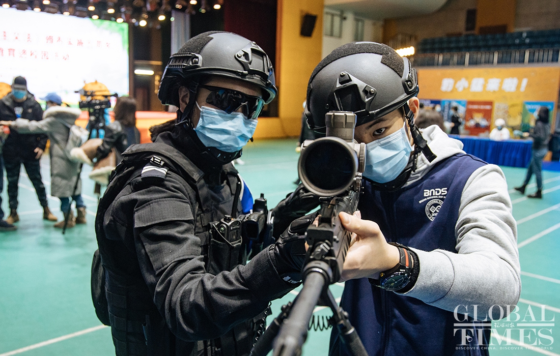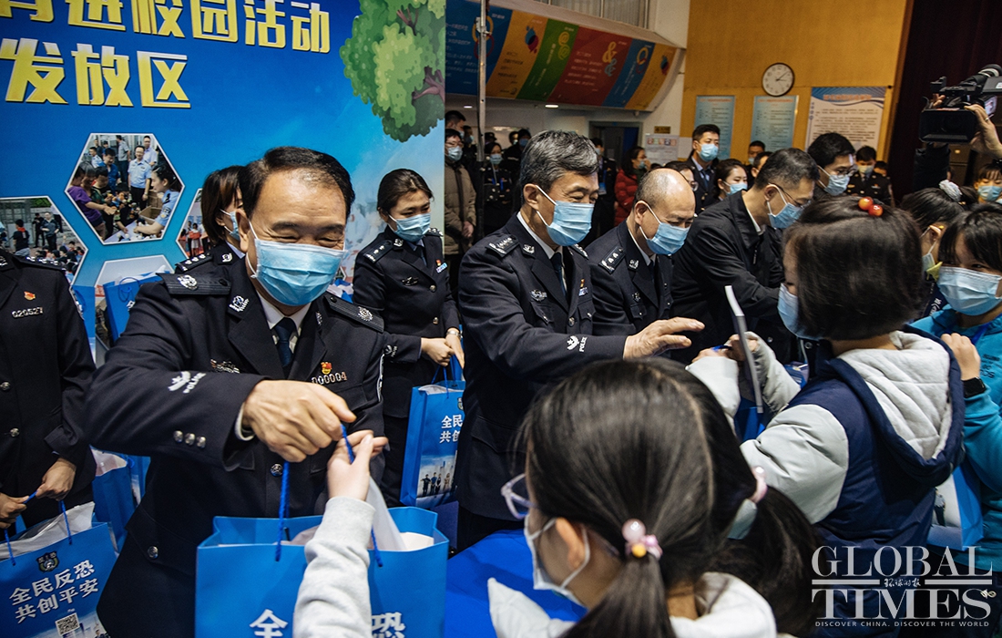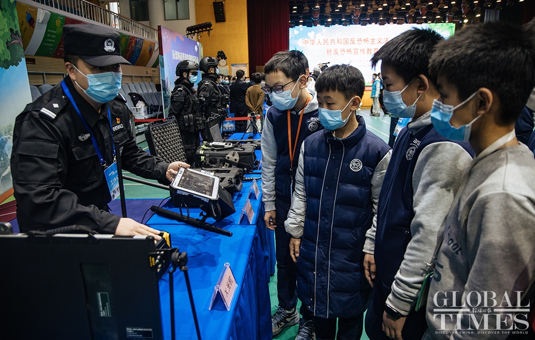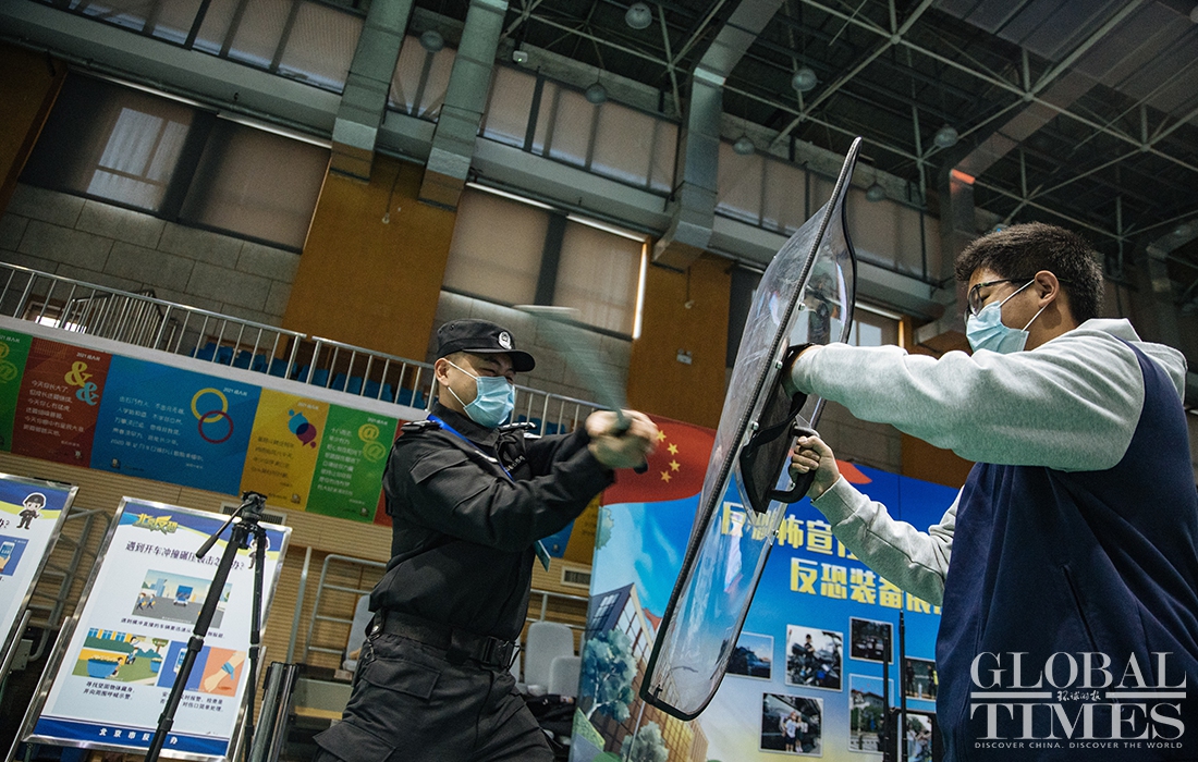 With a focus on popularizing the Anti-terrorism Act, the campaign aims to promote the public’s participation and cooperation in anti-terrorism work, helping students master survival knowledge and skills in case of emergencies. Photos: Li Hao/GT