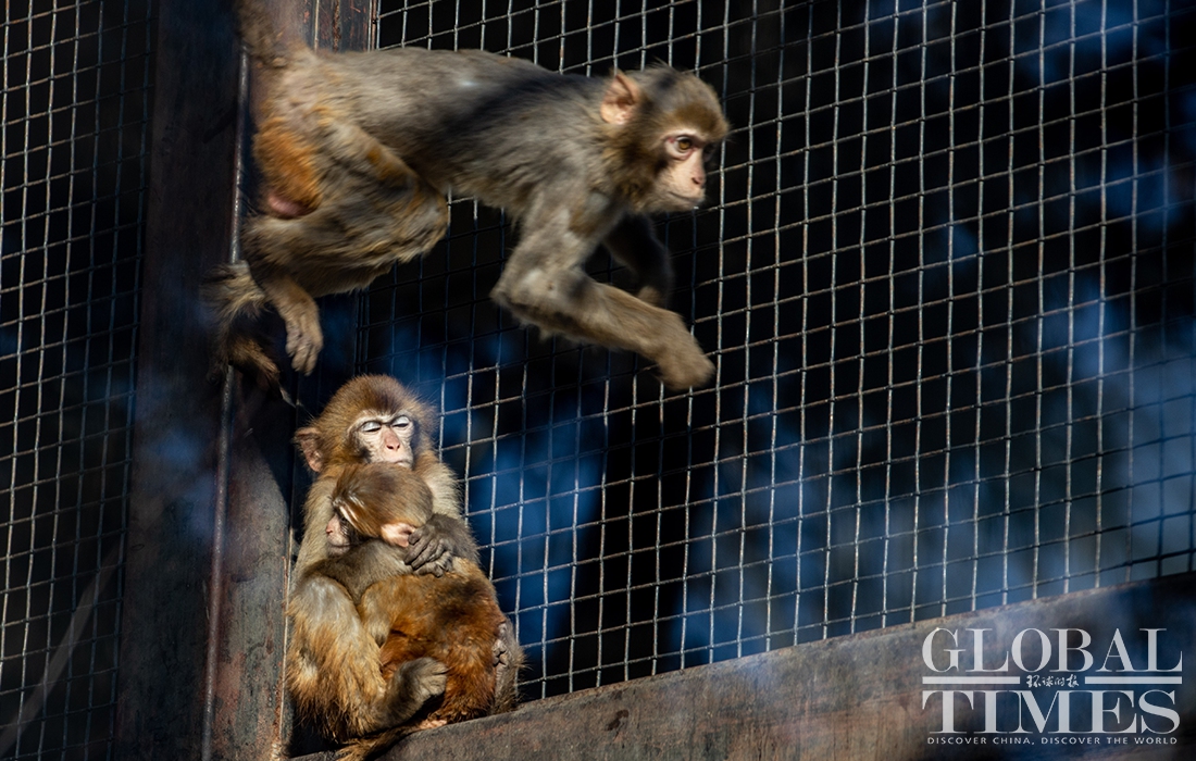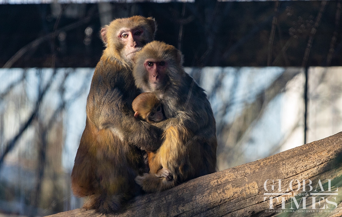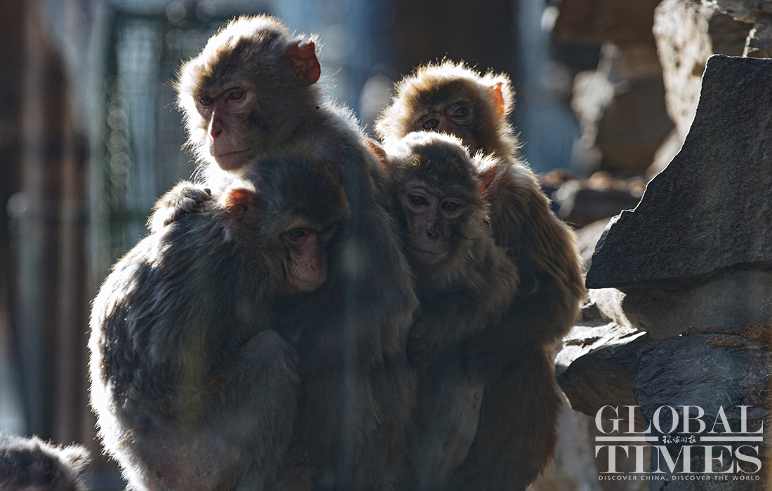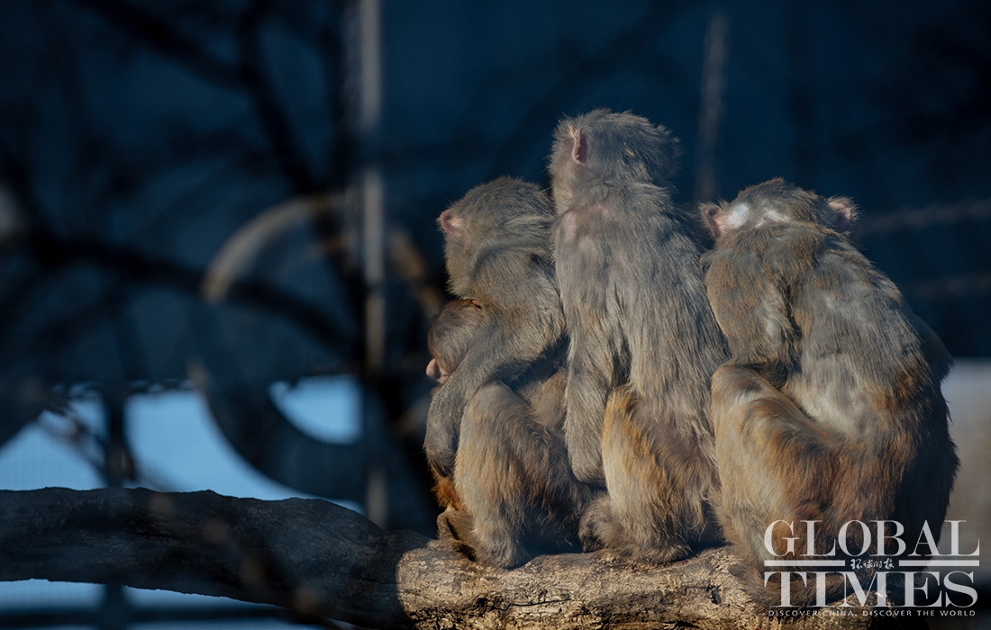 Beijing saw its lowest temperature on Thursday morning, reaching -19.5 C, the coldest since 1966. Animals at Beijing Zoo found ways to warm up on the freezing day, with macaques cuddling together, water fowls squatting on an ice lake and tortoises with sweaters. Photos: Li Hao/GT