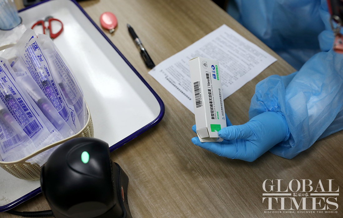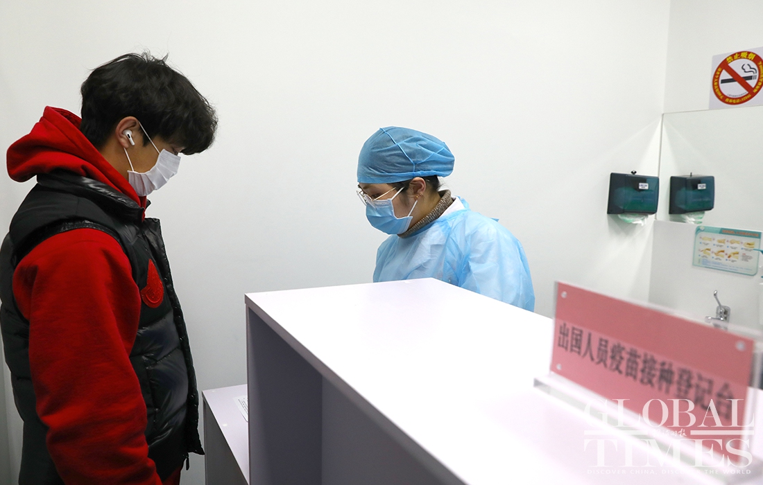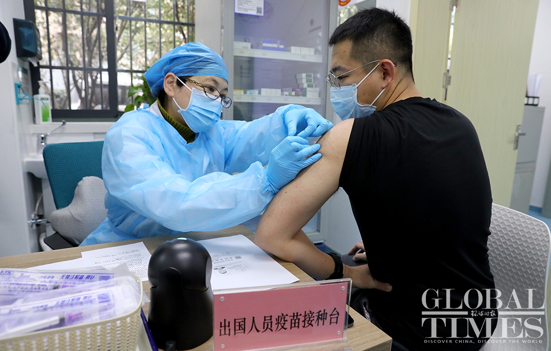 Free COVID-19 vaccine inoculations for residents who have to go abroad due to personal reasons including study and work kicked off in Shanghai on Thursday. 17 community clinics in the megacity accepted appointments and conducted closed-off management during the vaccination process. Those receiving the vaccine have to stay at the clinics for half an hour for medical observation after inoculation. Photos: Yang Hui/GT