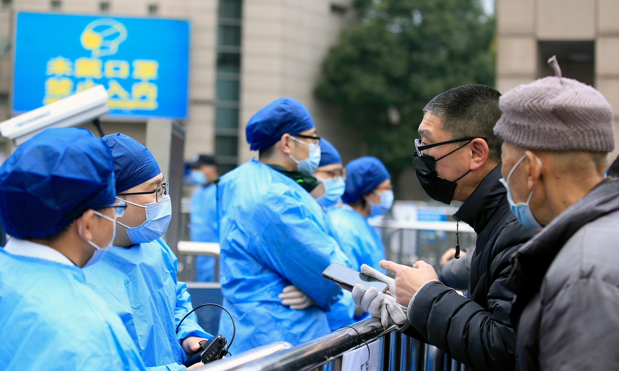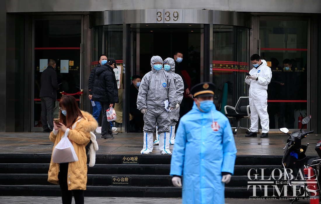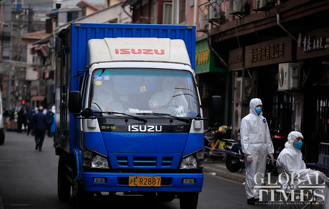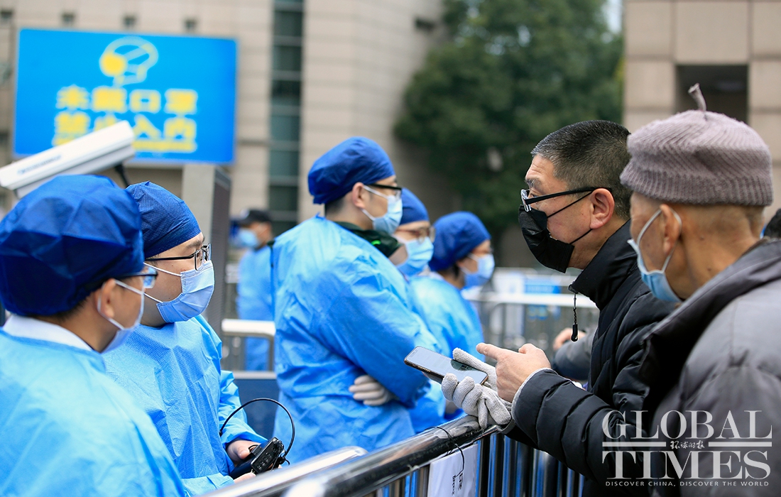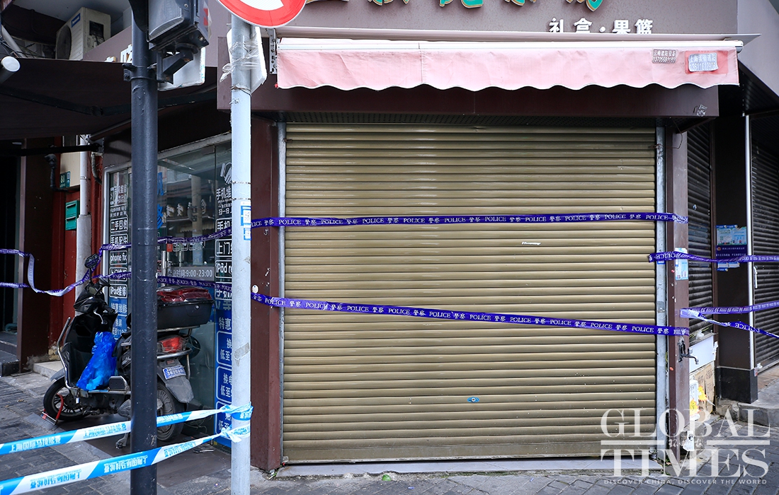 A Global Times reporter found on Thursday morning that the cancer center had been cordoned off, and the entire area surrounding the Renji Hospital, including residential compounds, had been put into lockdown, with medical staffers from the local center for disease control and prevention and epidemiological investigation personal working on site. Photos: Yang Hui/GT