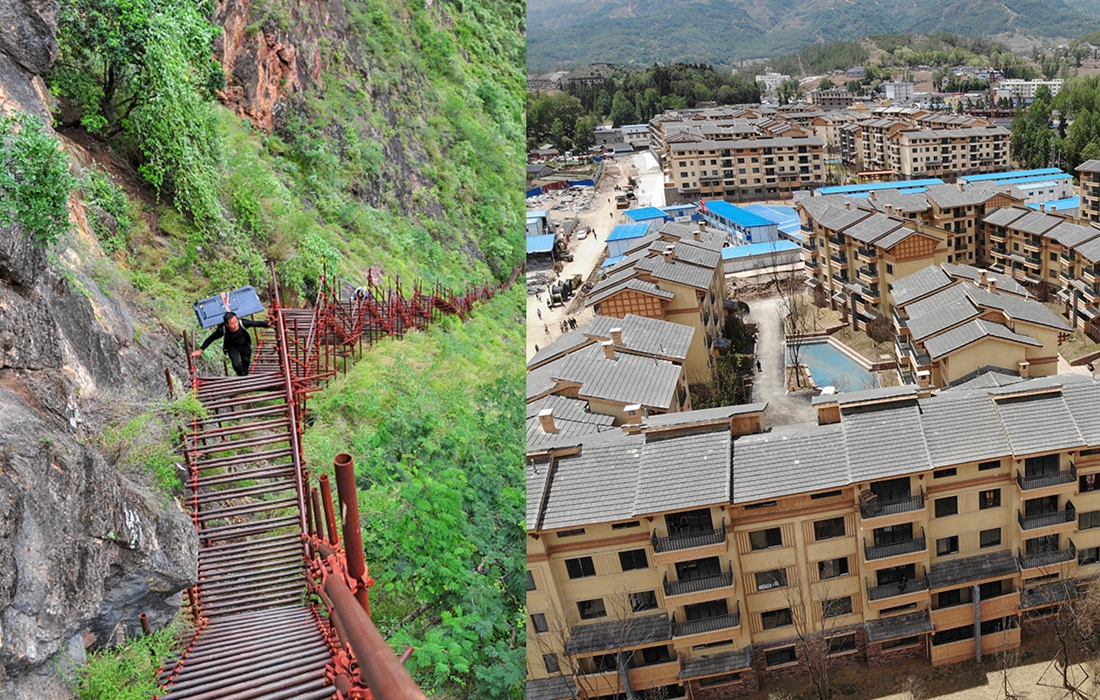 Xuanya Village, or “Cliff Village,” in Sichuan Province: From May 12 to 14, 2020, 84 poor households in "Cliff Village" have successively moved into new homes in a centralized resettlement site of the county.