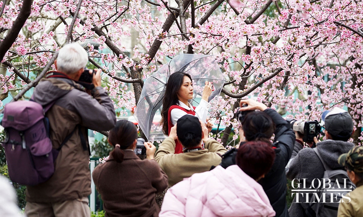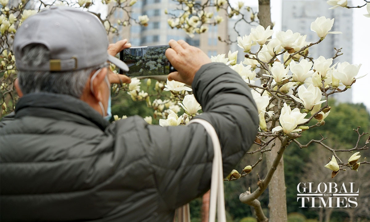 It’s time to enjoy nature’s beauty as the warm weather brings about the blooming of flowers in Shanghai. Under epidemic preventive measures, many residents went to the parks to enjoy cherry, magnolia and plum blossoms, which are in full bloom on Thursday.