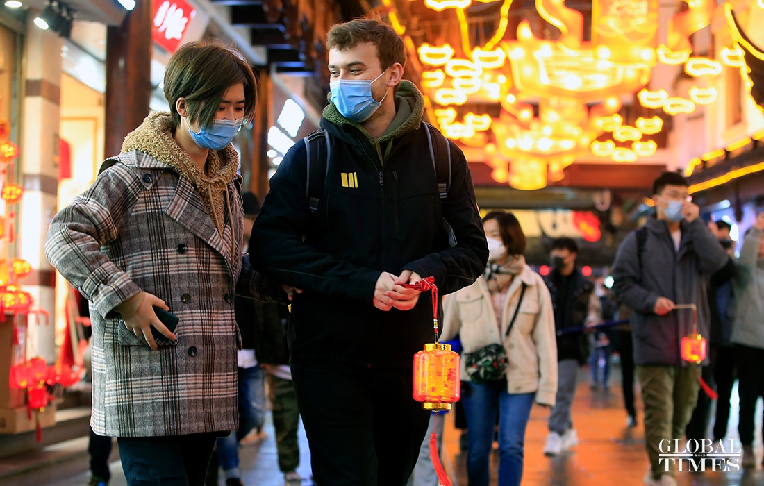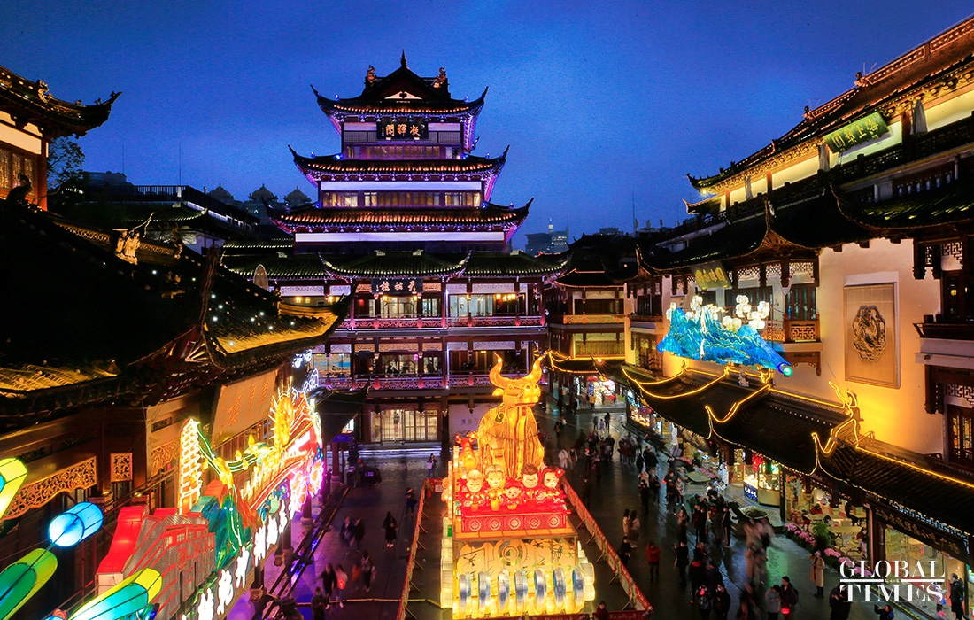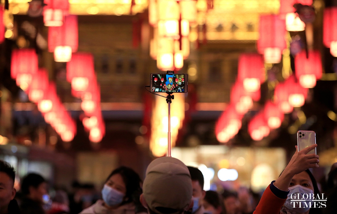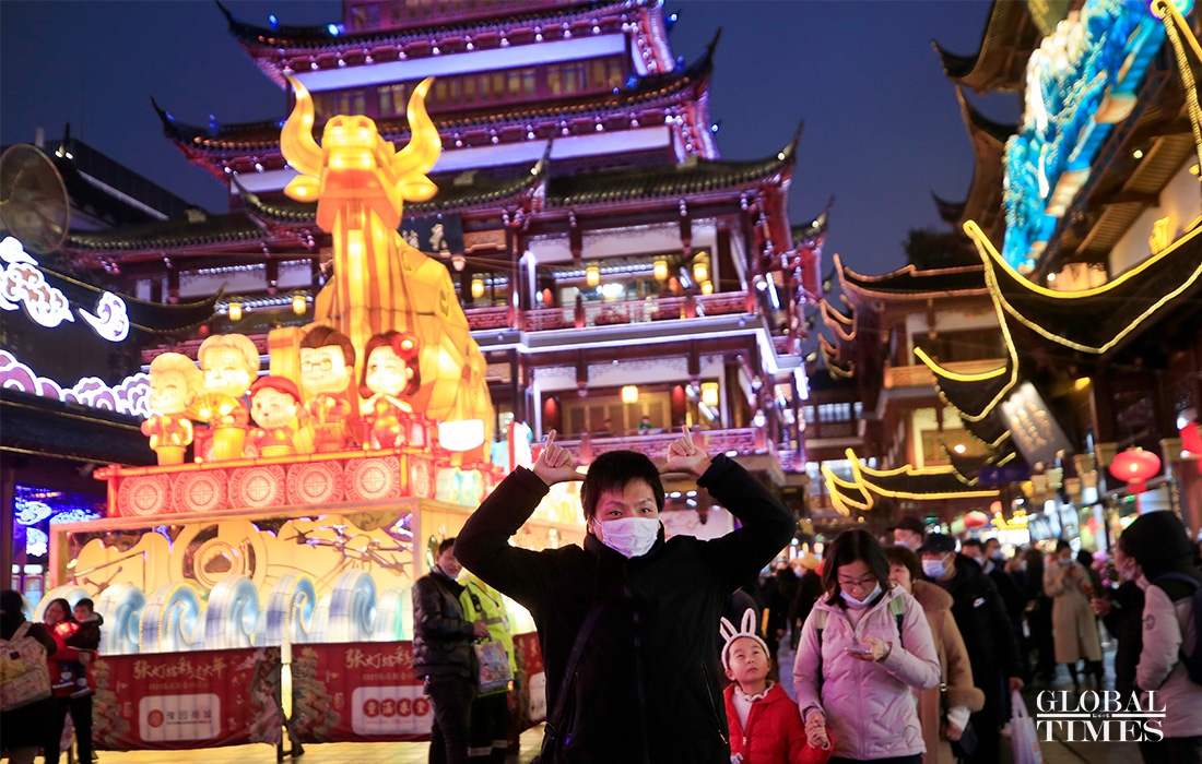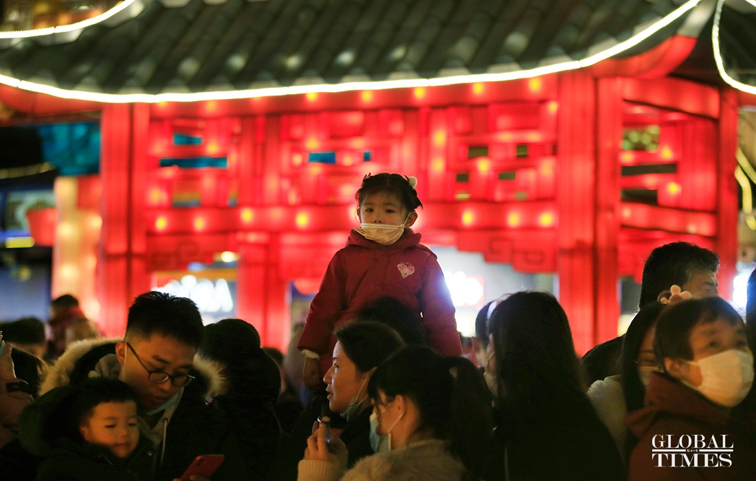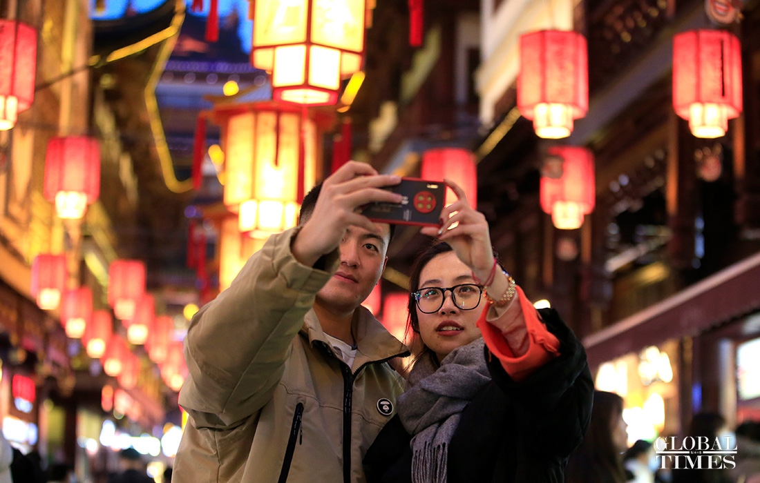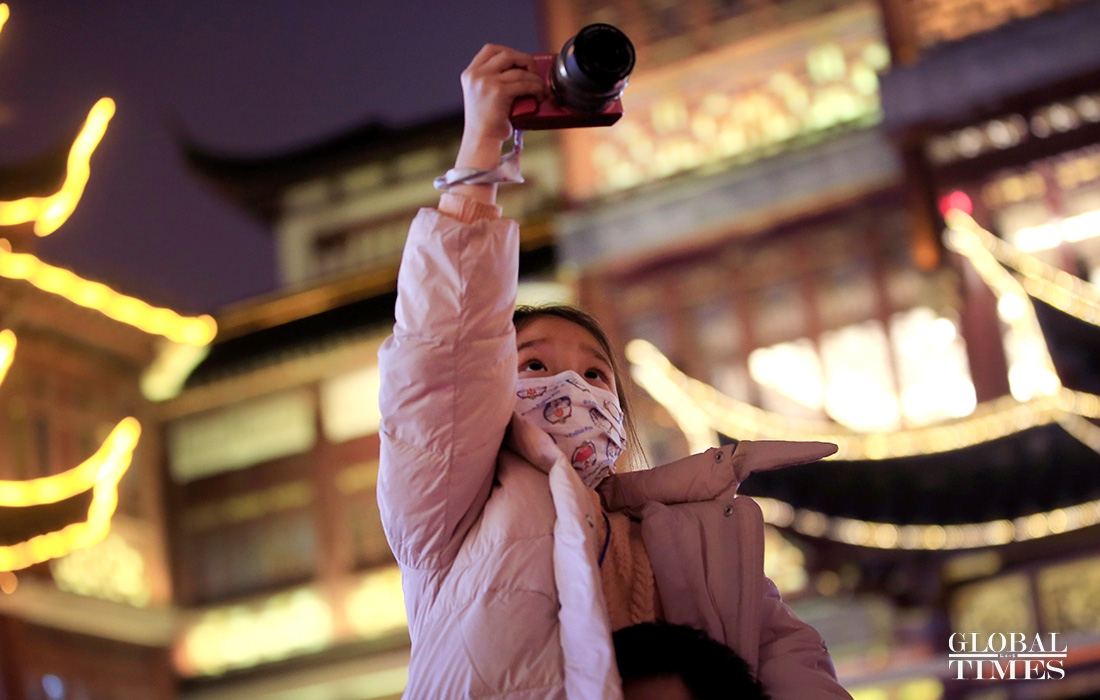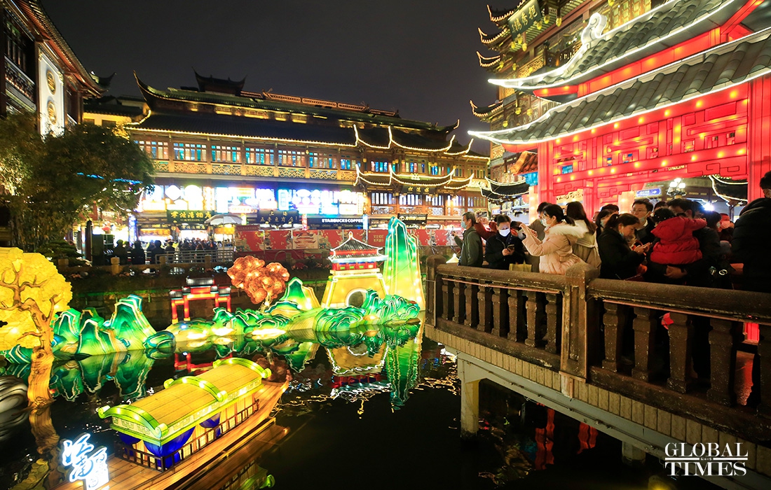 Visitors enjoy lantern decorations to celebrate the Lantern Festival in Yuyuan Garden in downtown Shanghai on Friday. The traditional festival falls on the 15th day of the first month of the Chinese lunar calendar, which also means the ending of the Spring Festival in China. (Photos: Yang Hui/GT)