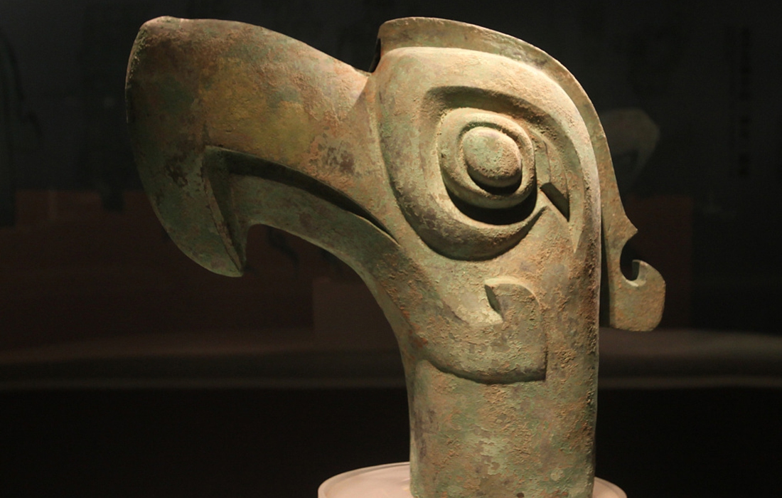 A bronze bird head is on exhibition at the Sanxingdui Museum. Photo: VCG figcaption >