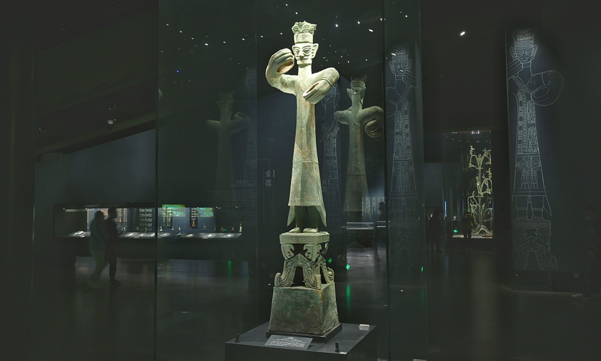 A bronze standing figure at the Sanxingdui Museum. Photo: VCG