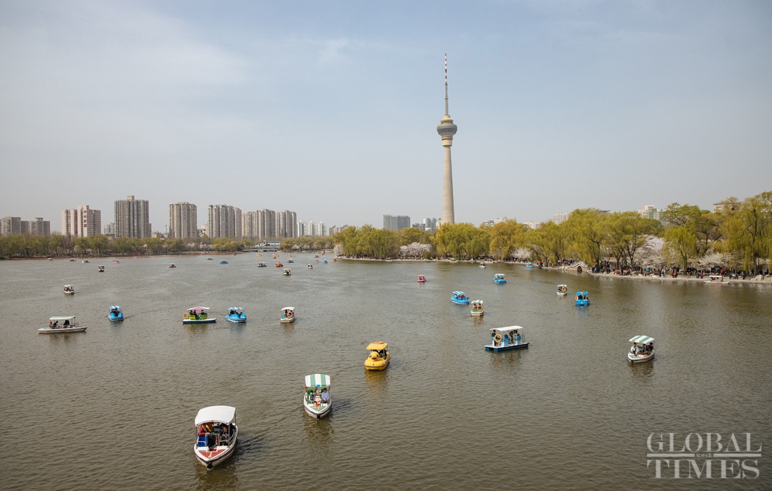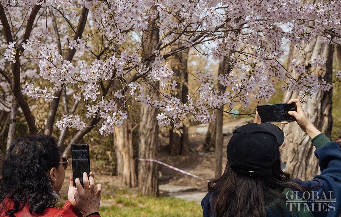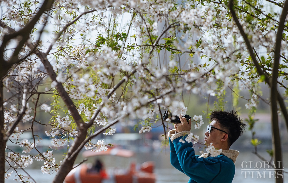 Cherries at Yuyuantan Park in Beijing are entering the best viewing period with a full blossom, attracting tens of thousands of tourists. The park has more than 40 cherry varieties and nearly 3,000 cherry trees, making it one of the largest cherry blossom viewing parks in north China.