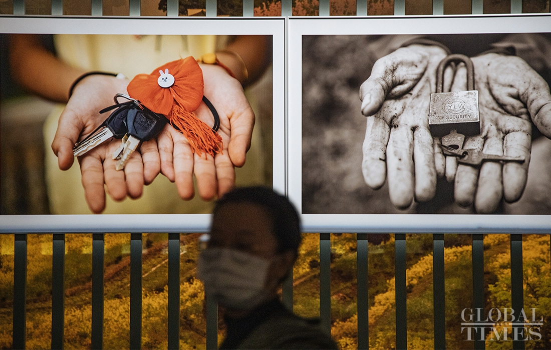 The photo exhibition of poverty alleviation in China was officially opened at the National Museum of China Wednesday. Nearly 180 photos record touching moments in the great historical practice of poverty alleviation. Photos: Li Hao/GT