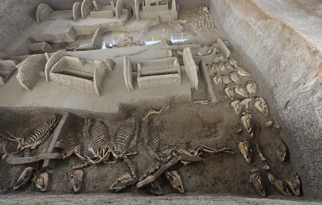 Photo shows the Xuyang graveyard site and discoveries in Yichuan county, Luoyang, Henan province. Cultural relics unearthed from the graveyard show a mixture of rituals, offering evidences to ethnic migration and integration during the Eastern Zhou Dynasty (770 BC- 256 BC). Photo: National Cultural Heritage Administration figcaption >