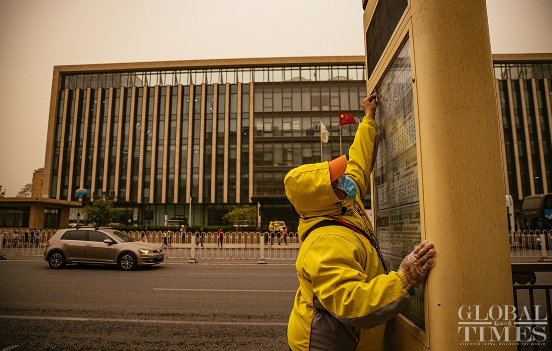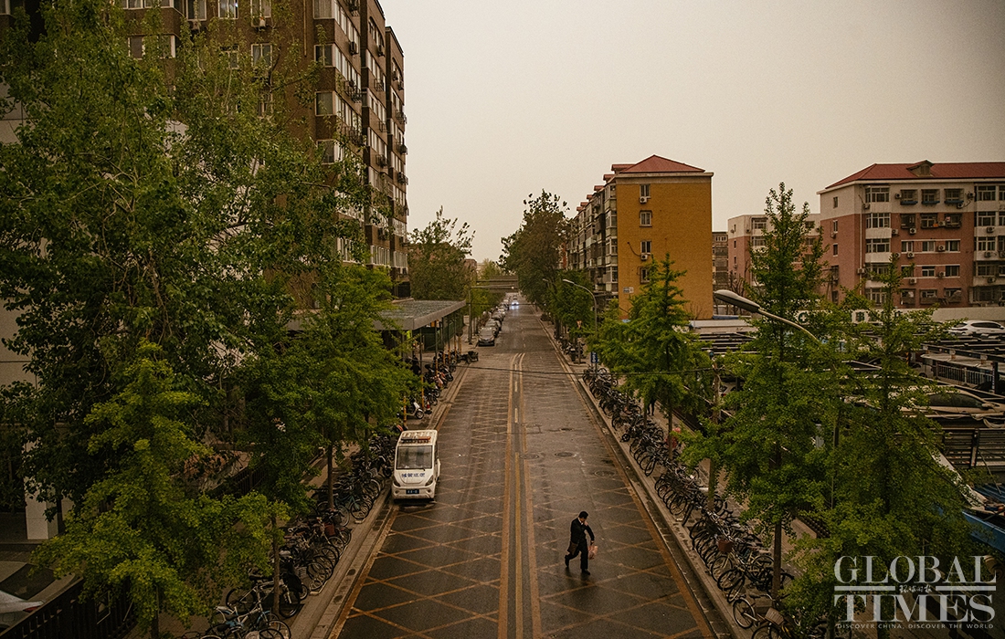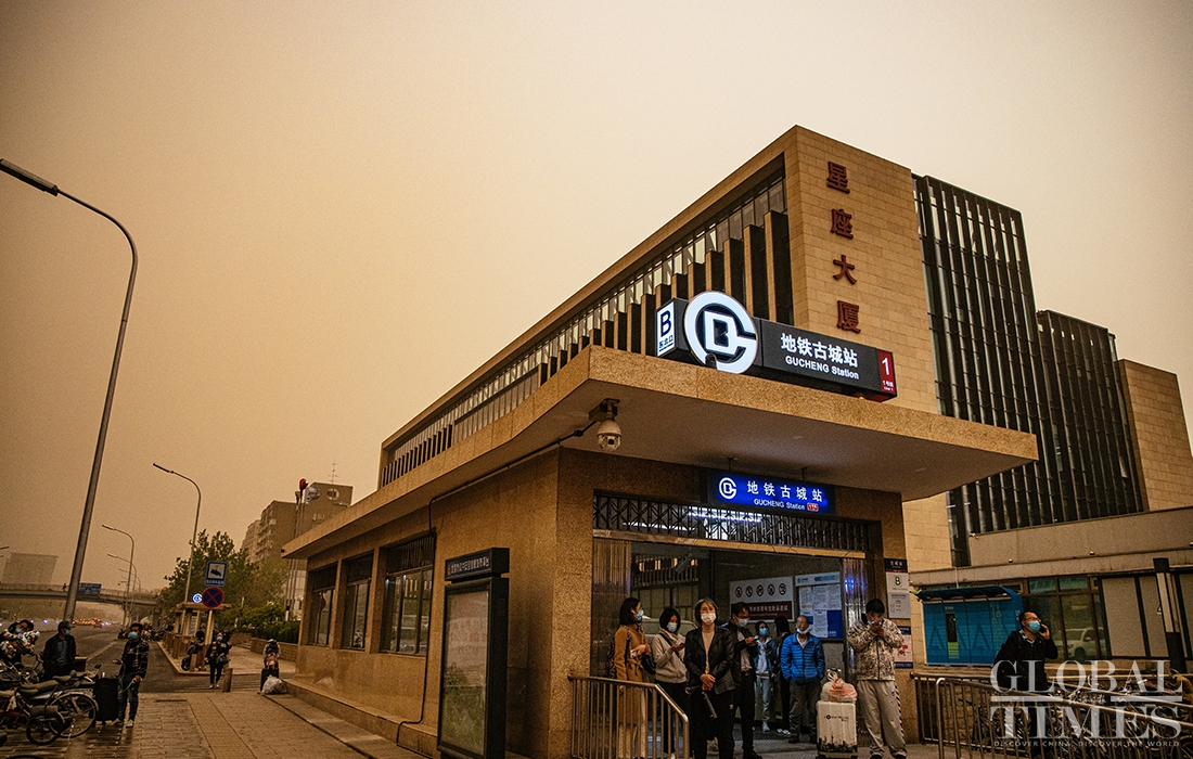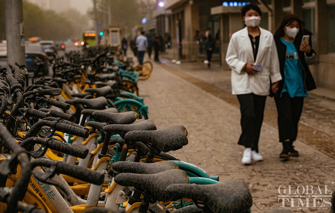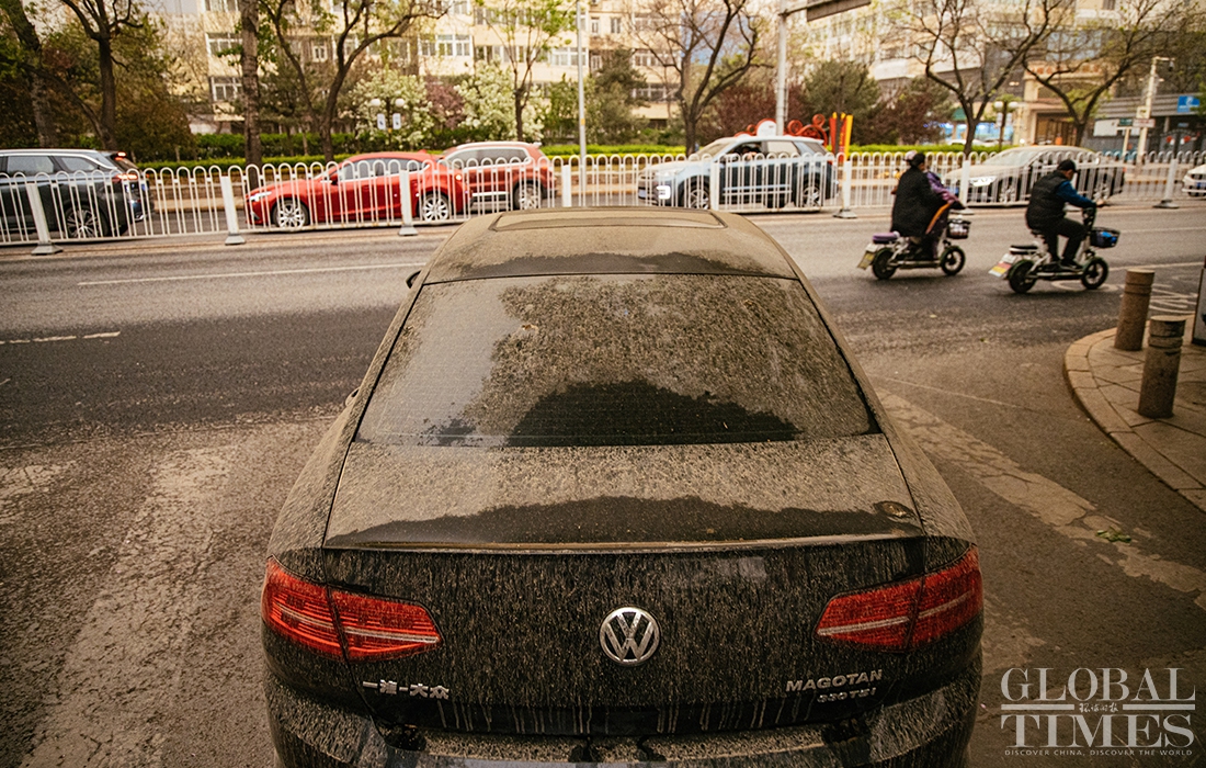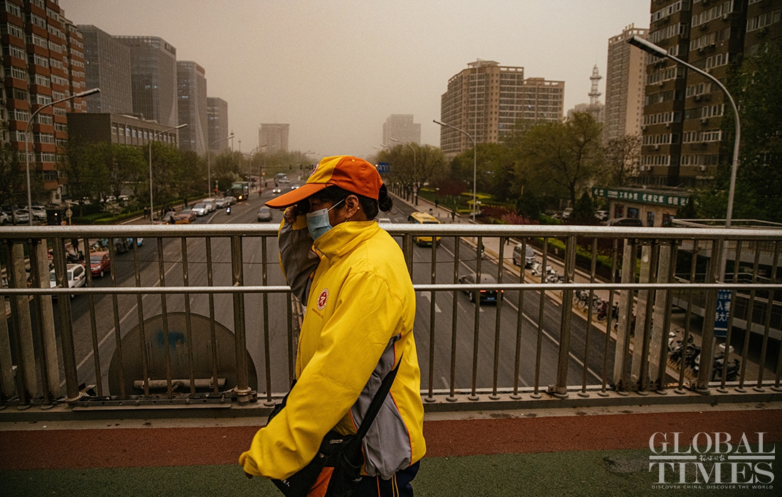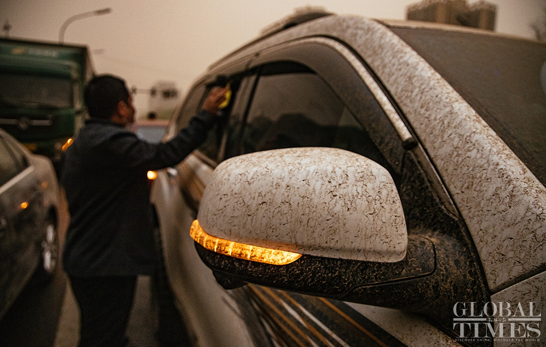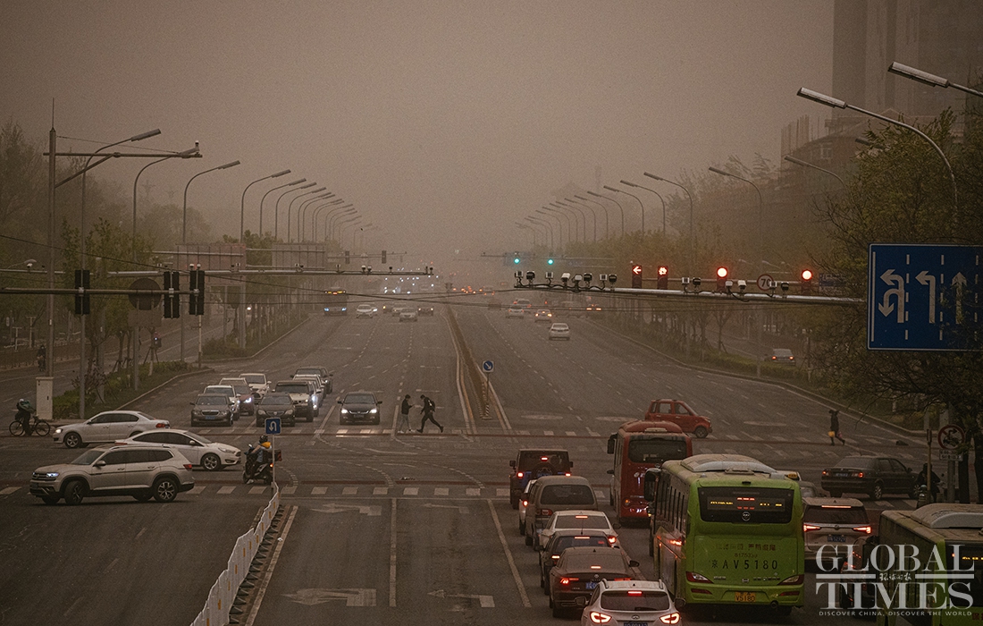 Beijing encountered a new wave of sandstorms with muddy rainfall on Thursday afternoon, triggering a blue alert for sandstorms. Kindergartens, elementary and secondary schools in China's capital cancelled outdoor activities. (Photos: Li Hao/GT)