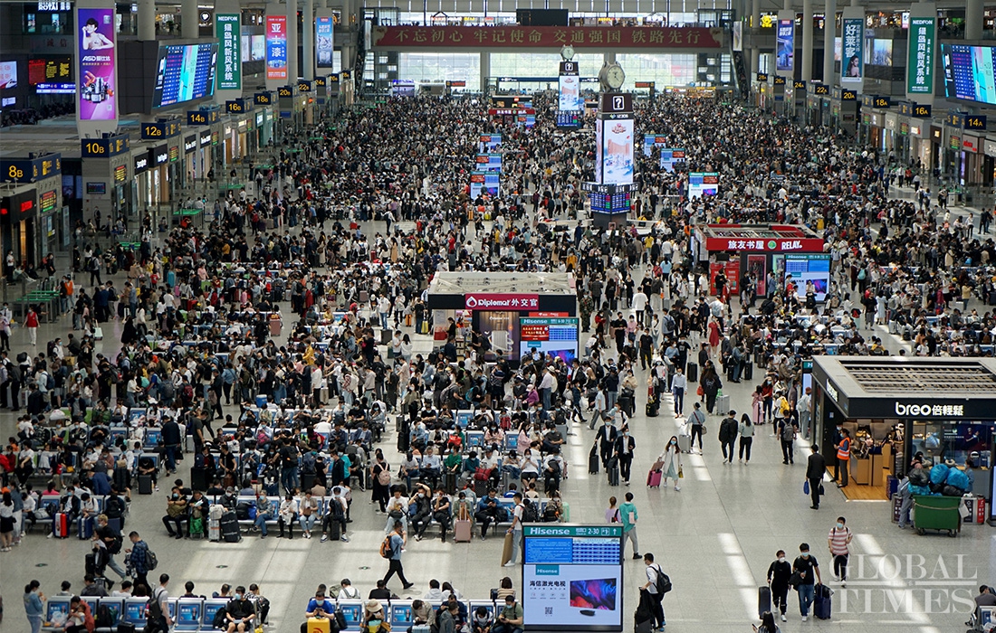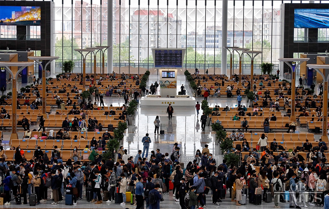 Chinese railway system witnesses travel rush as May Day holidays approach