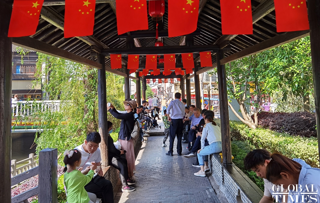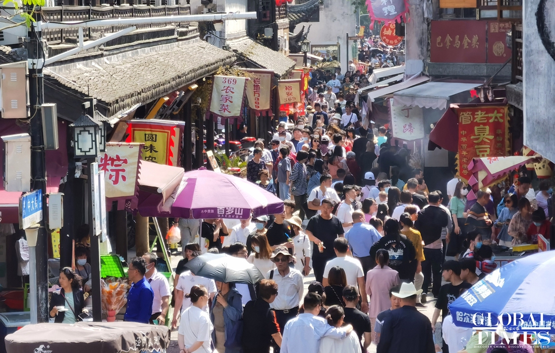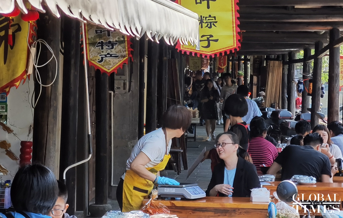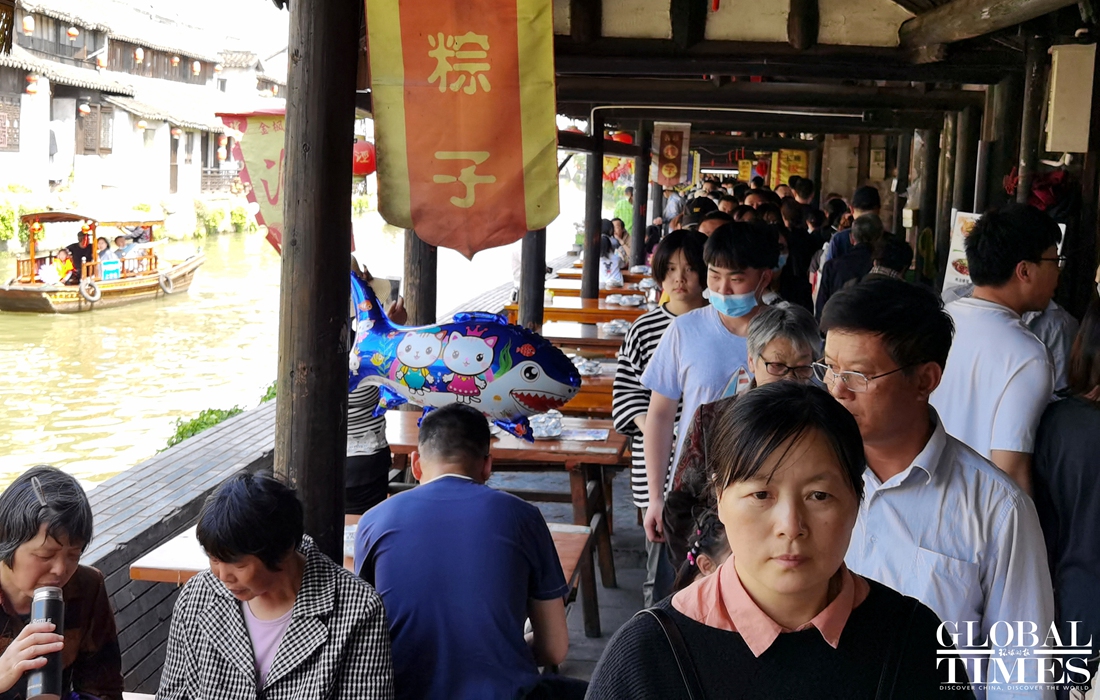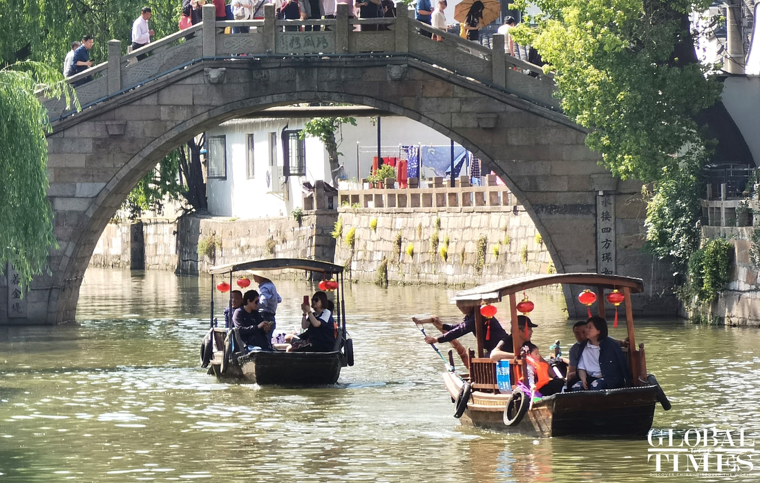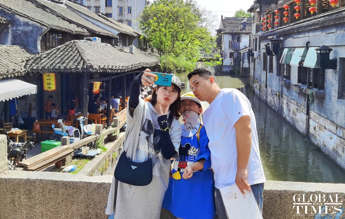 GT reporters observed on Saturday, the first day of the five-day May Day holidays, that traffic was very heavy in Shanghai. In the ancient town of Fengjing in Shanghai, many tourists enjoyed their holiday leisure time in the springtime sun. (Photos: Yang Hui/GT)