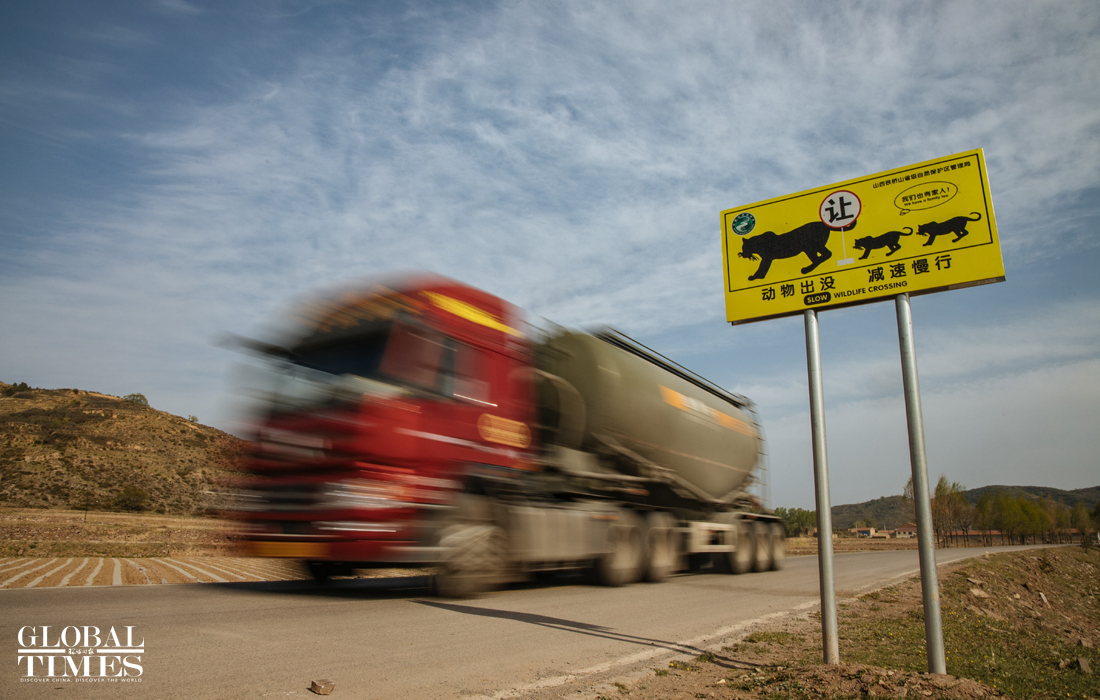 Signs can often be seen in Heshun county to remind passing vehicles about the wild animals. The impact of roads on animals has always been the focus of the CFCA. The team members hope that one day they can see the North China leopards spread back around Beijing, where they once lived. Photo: Li Hao/GT figcaption >
