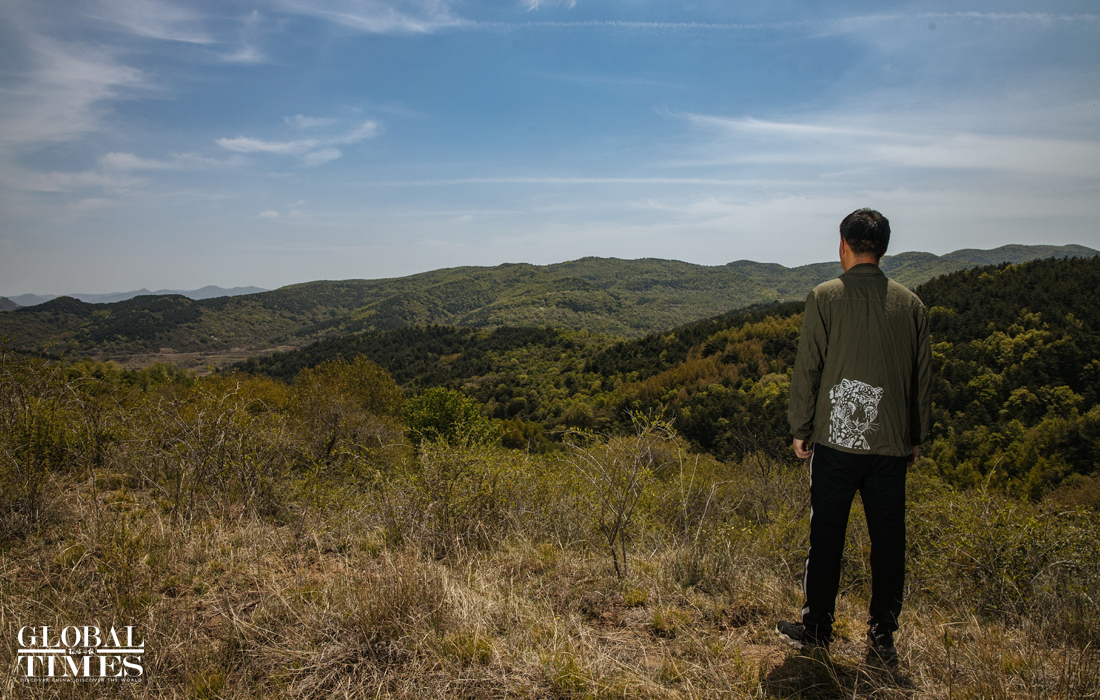 Standing in the Taihang Mountains in Heshun county, a member of CFCA North China Leopard protection team looks into the distance. In these mountains, countless species including the North China leopard are guarded by a group of people like him. Photo: Li Hao/GT figcaption >