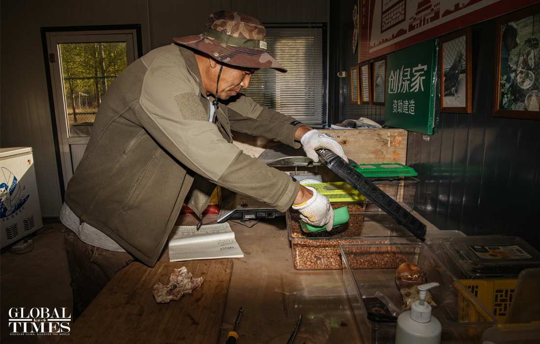 A protection team member prepares food for the rescued animals. Photo: Li Hao/GT figcaption >