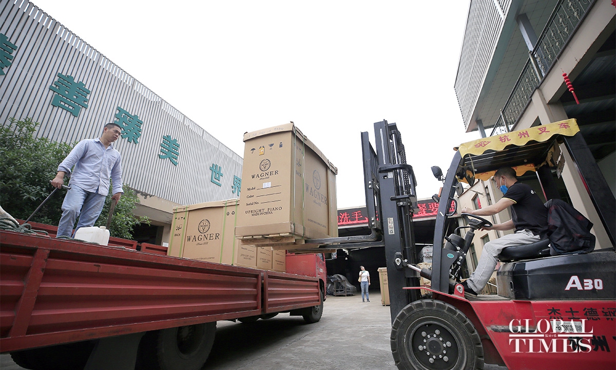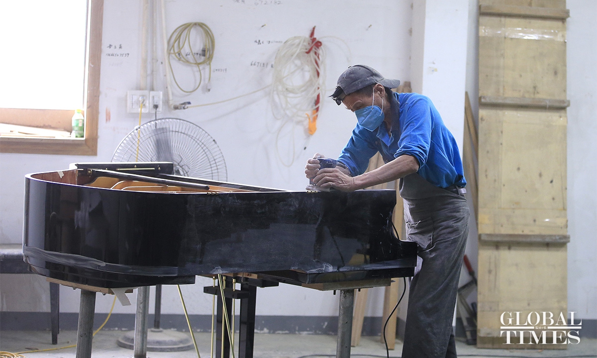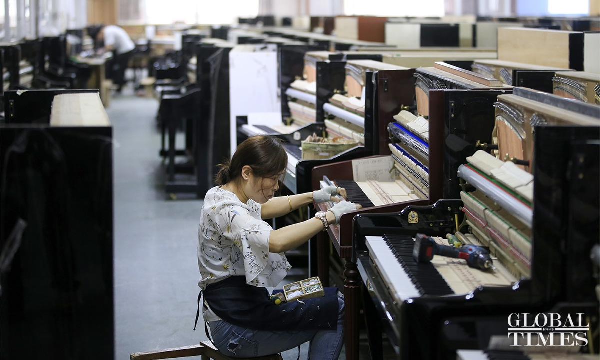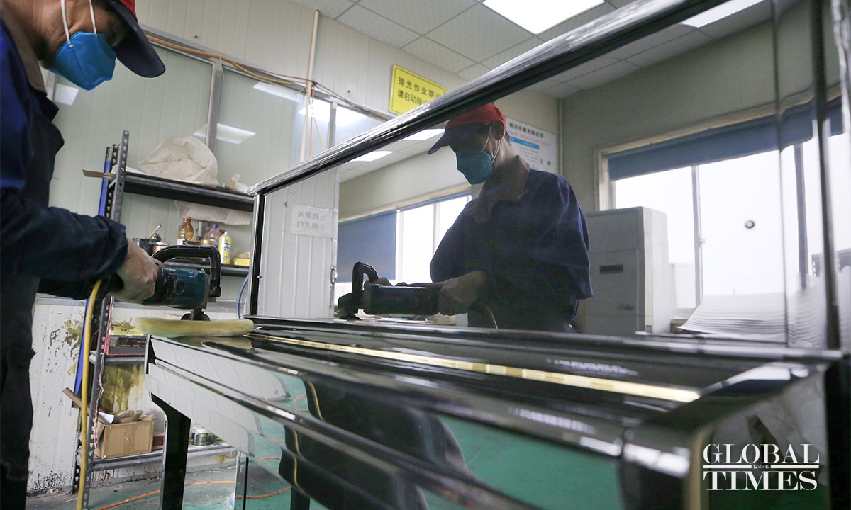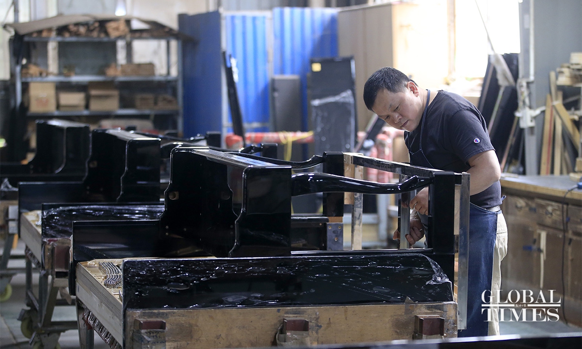 Luoshe town, in Deqing, East China’s Zhejiang Province produces 1/7 of pianos in China. At present there are nearly 100 piano manufacturing and accessory enterprises in the town, with a total output value of more than 500 million yuan ($77 million), more than 3,500 piano making professionals. More than 50,000 pianos are made each year and exported to more than 20 countries and regions such as Europe and Southeast Asia.