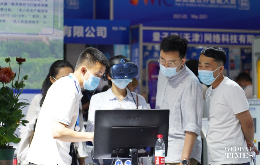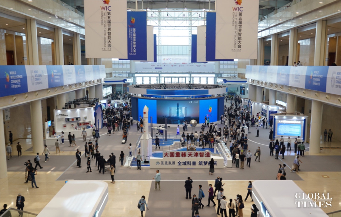 The 5th World Intelligence Congress (WIC) kicked off at Meijiang Convention and Exhibition Center in North China’s Tianjin Municipality on May 20. With a combination of online and offline delivery modes, the congress presents the “4 in 1” international platform of “conferences, exhibitions, competitions + intelligence experiences.” The event will last to May 23. (Photo: Liu Xiaojing/GT)