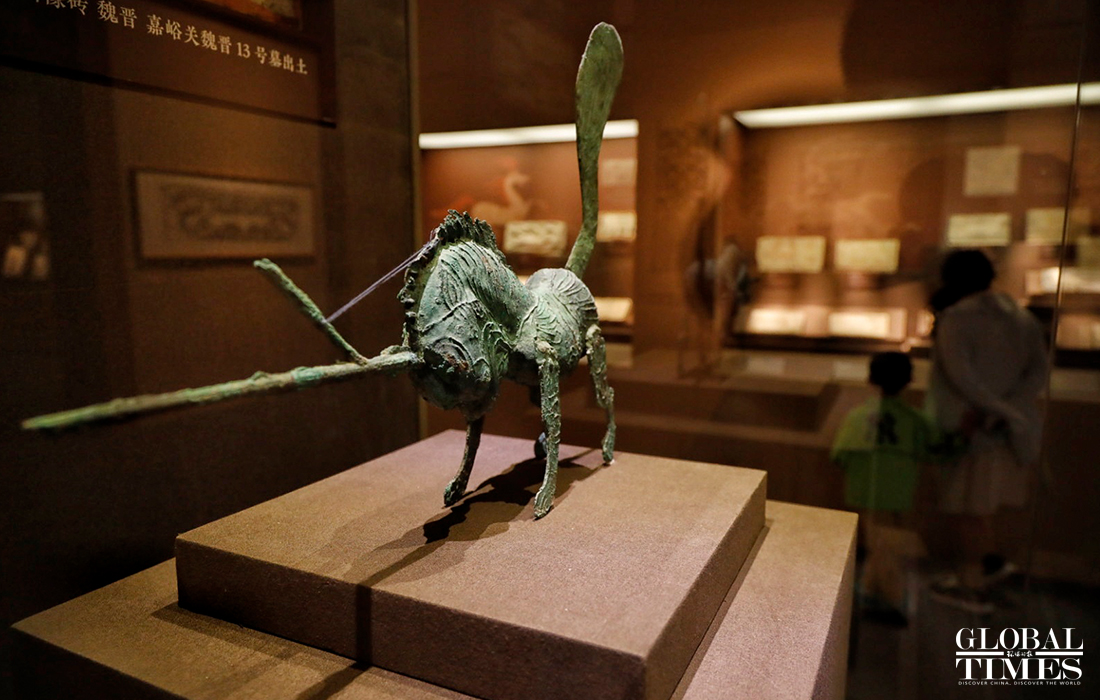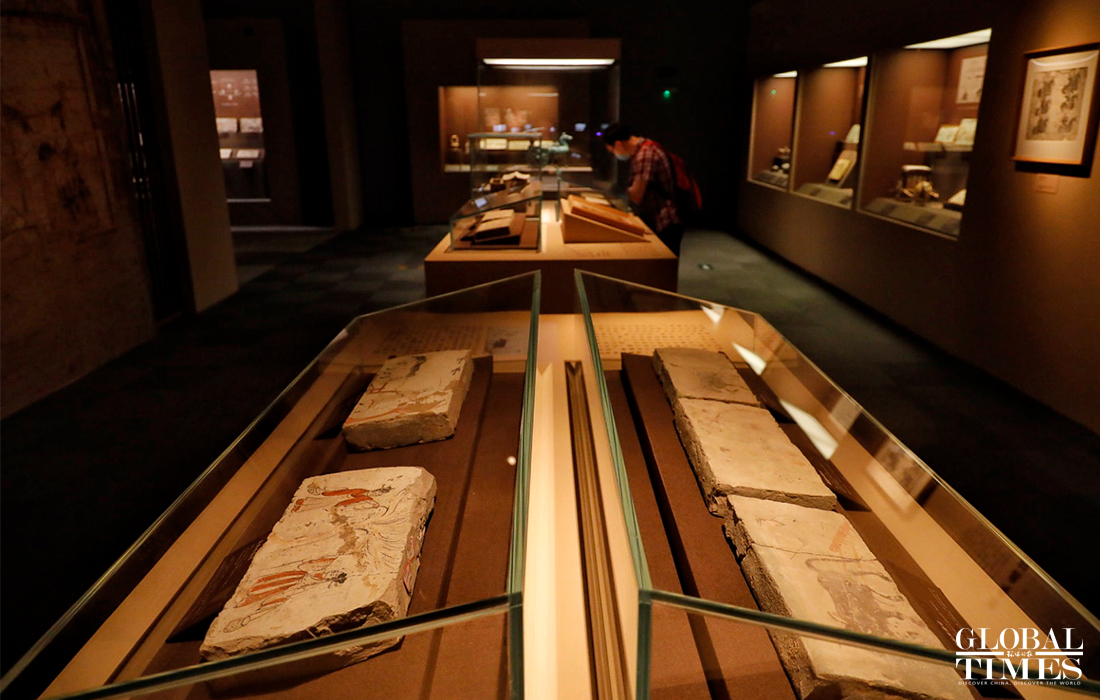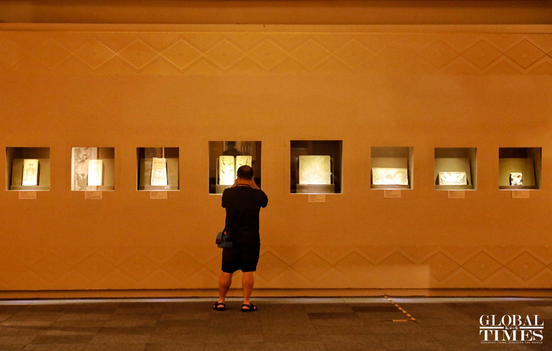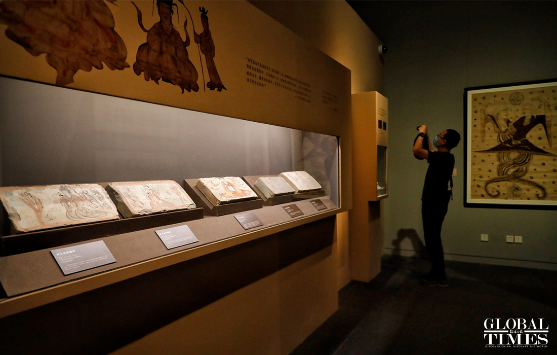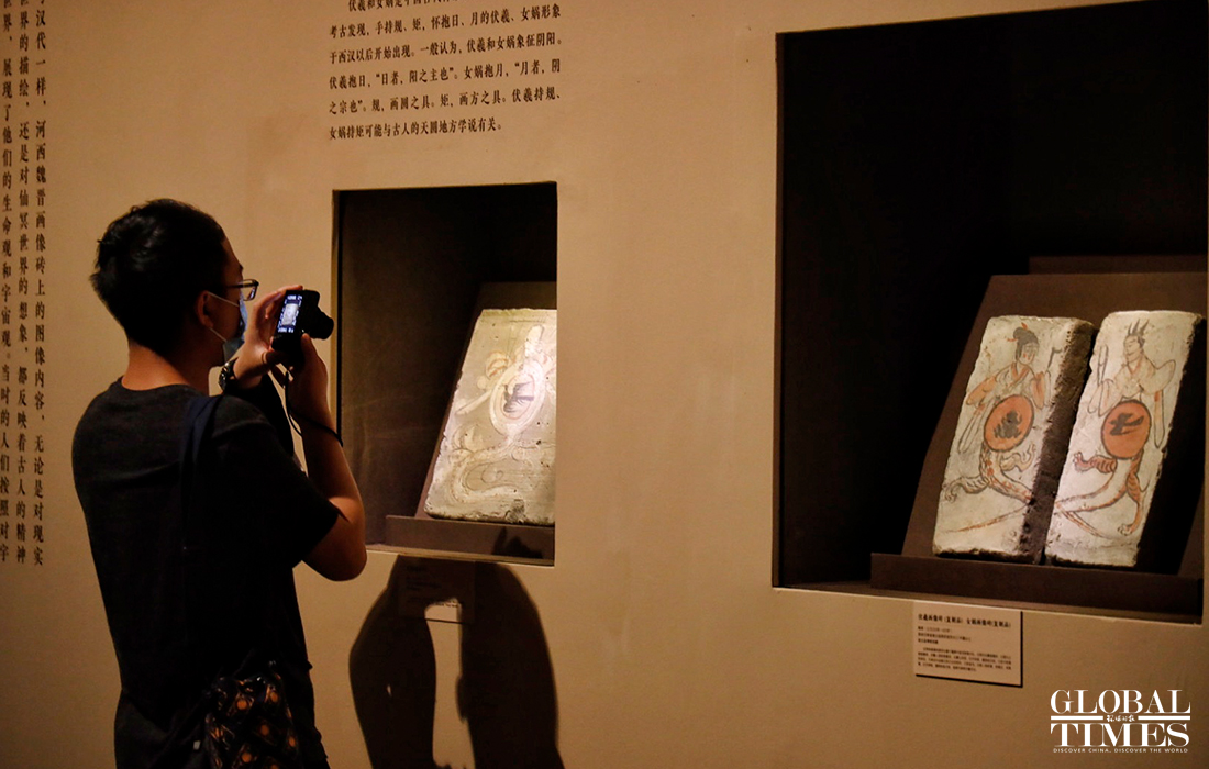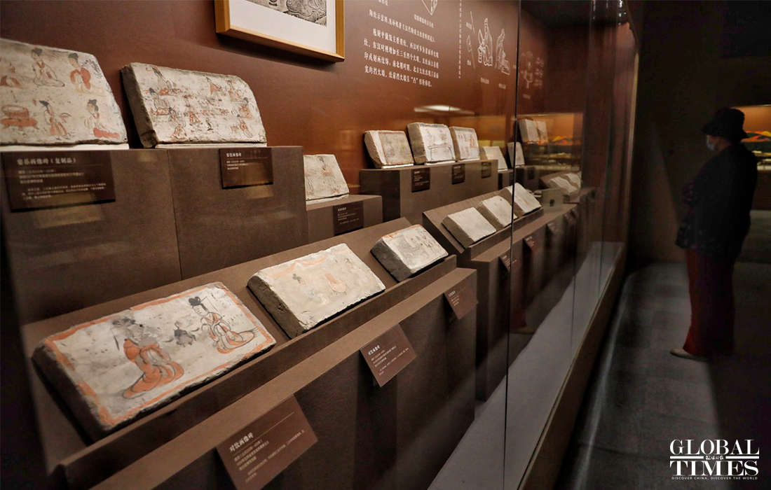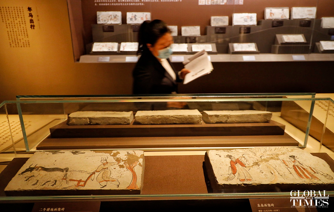 An exhibition about the lives of ancient Chinese portrayed on brick slabs kicked off at the National Museum of China in Beijing on Friday. The 237 cultural relics exhibited are from Gansu Province, mainly including portrait bricks, woodware and pottery, among which 35 are first-class cultural relics. The brick portraits were unearthed from the Hexi Corridor area in China's northwest, and the content on the portrait bricks involves ancient farming, nomadism and mythology from the Wei and Jin dynasties, and depicts the production and living conditions of ancestors living on Hexi area at the time. Photos: Li Hao/GT