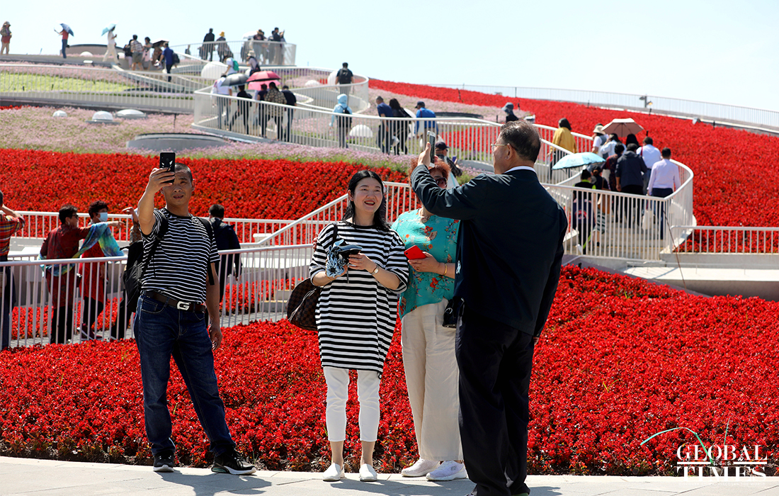 International friendship city gardens designed by companies from Spain, Israel, the UK, South Africa, Italy, the Netherlands and Canada are on display at the expo. A castle model designed by the Shanghai Disneyland Resort, which was decorated with beautiful flowers, was also on display, attracting both adults and kids. Photos: Yang Hui/GT