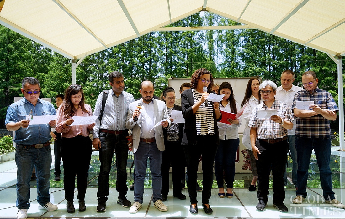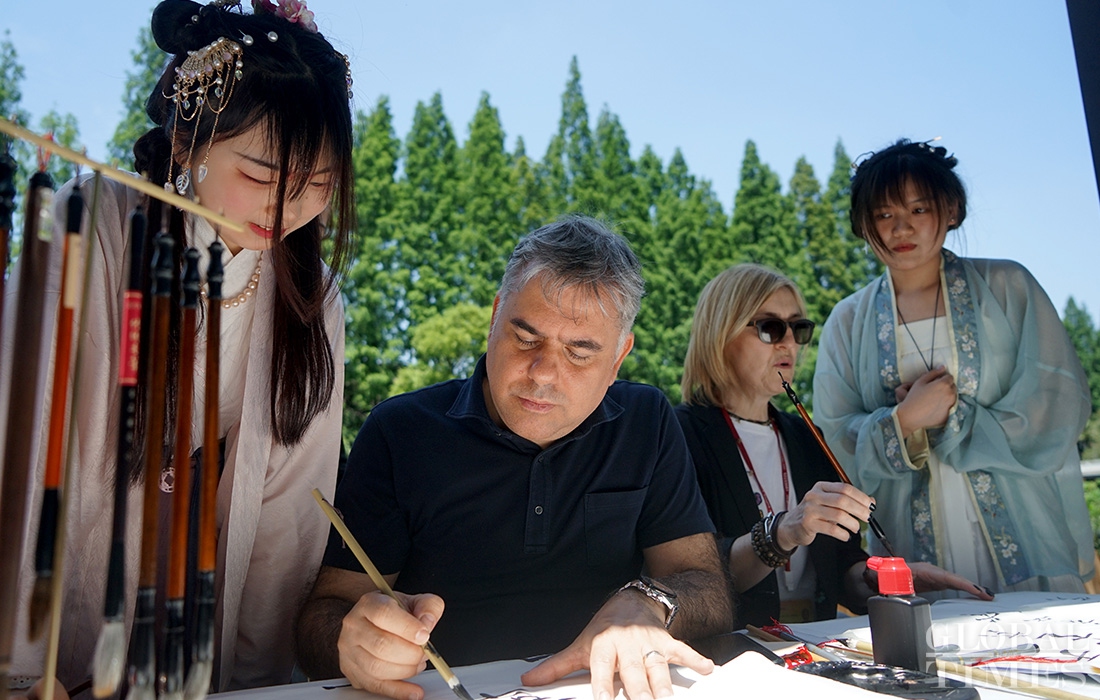 On Saturday, more than 30 diplomats from 18 consulates in Shanghai, including those from Russia, Germany, Finland, Hungary, Mexico, Pakistan and Poland, gathered at East China Normal University to participate in a culture market that revive the tradition and culture of the Song Dynasty (960–1279). The diplomats were provided with the chance to make tea, taste Chinese dim sum, watch the shadow puppetry play, make paper, try on the Hanfu and block printing, all in Song Dynasty style.