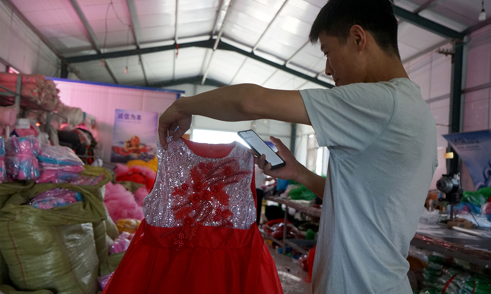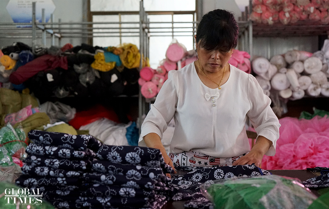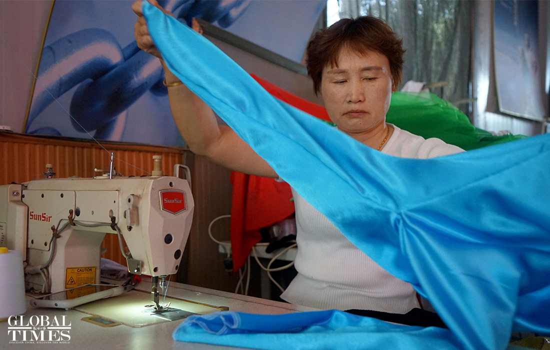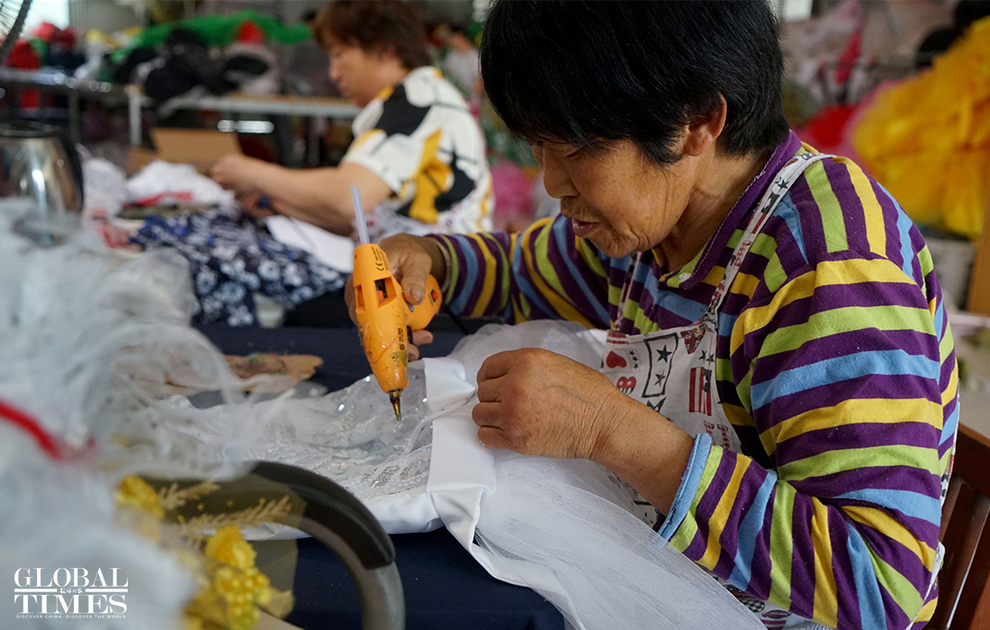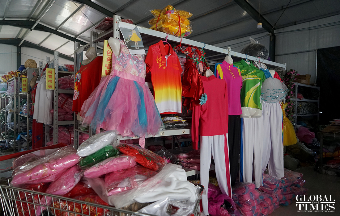 Local performance clothes makers in Caoxian county, East China's Shandong Province are working hard to catch up with the booming number of incoming orders as the country prepares to celebrate the 100th anniversary of the CPC's founding. Some costume makers saw their sales reach 1 million yuan in May, beating sales from 2019. Some customer service workers have also had to stay up until 3am to take new online orders. The costumes most sought after include military uniforms and children's dancing clothes, they said. Currently over 70 percent of costumes in China are made in Caoxian. Photos: Chen Xia/GT