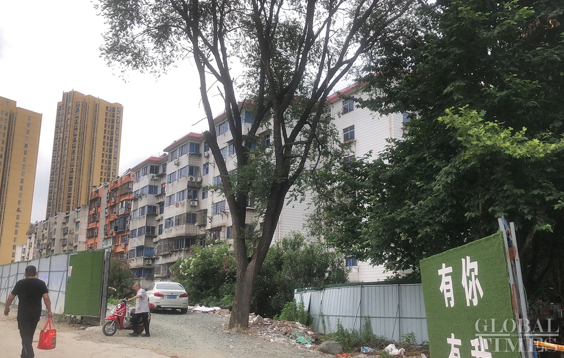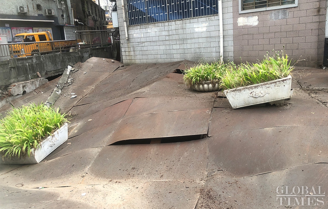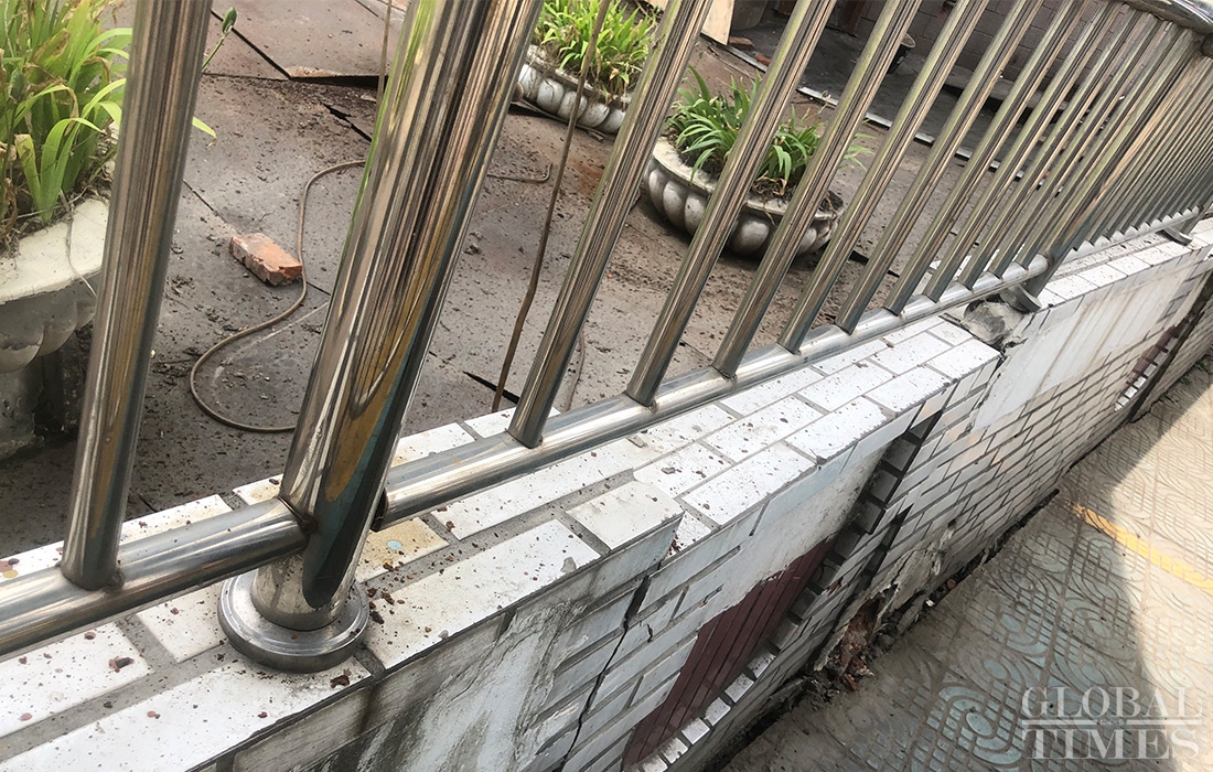 The garden of a house near the collapsed building during the explosion was carpeted with iron plates.Photo:Leng Shumei/GT figcaption >