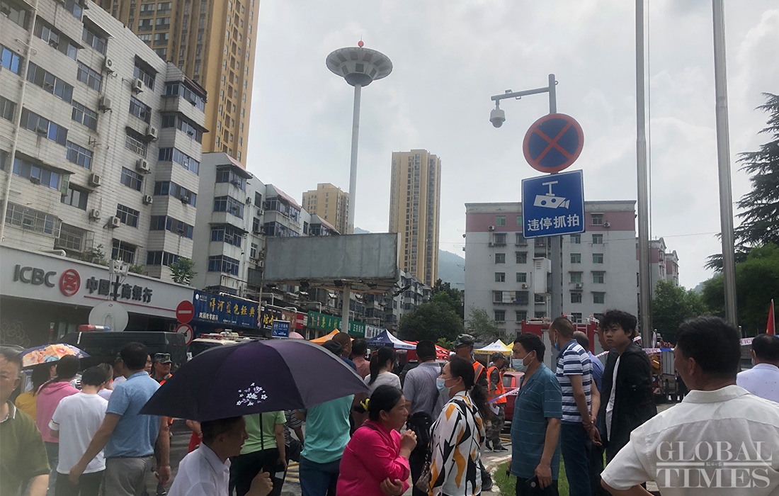 Photo taken near the site of a natural gas explosion that occurred at a market in Shiyan, Central China’s Hubei Province on Sunday morning. Photo:Leng Shumei/GT