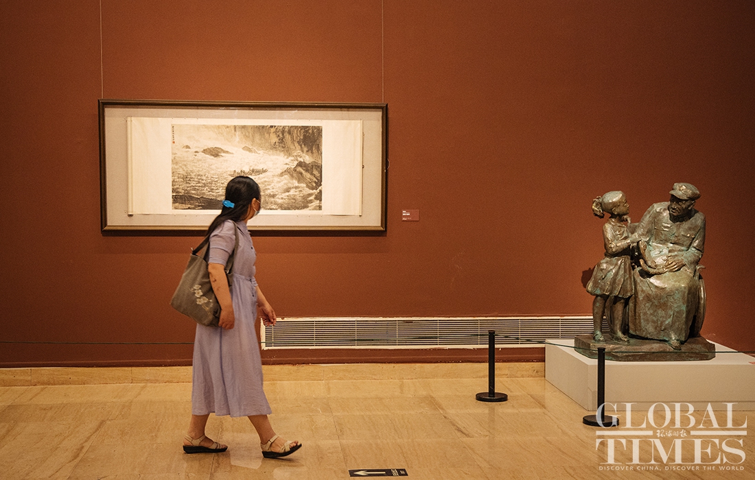 A new exhibition featuring over 420 paintings, prints and sculptures on a theme of historical moments since 1921, when the Communist Party of China was founded, kicked off on Wednesday at the National Art Museum of China to celebrate the 100th anniversary of the founding of the CPC.