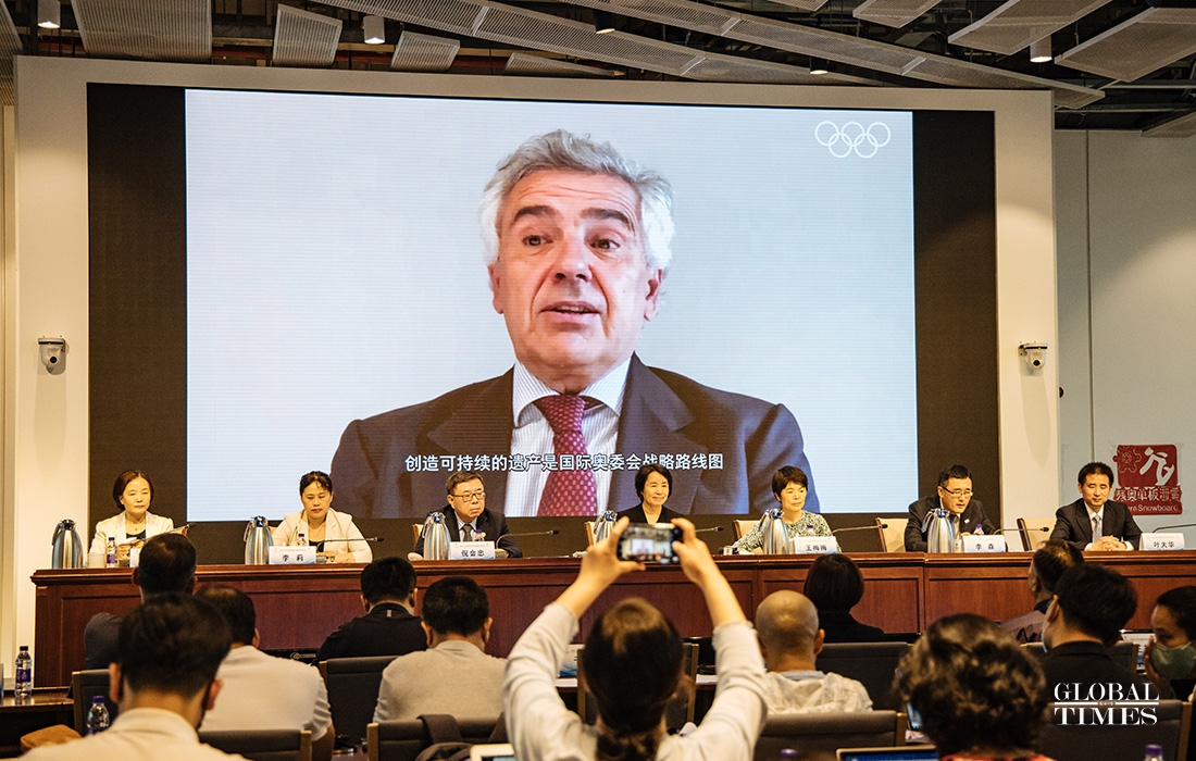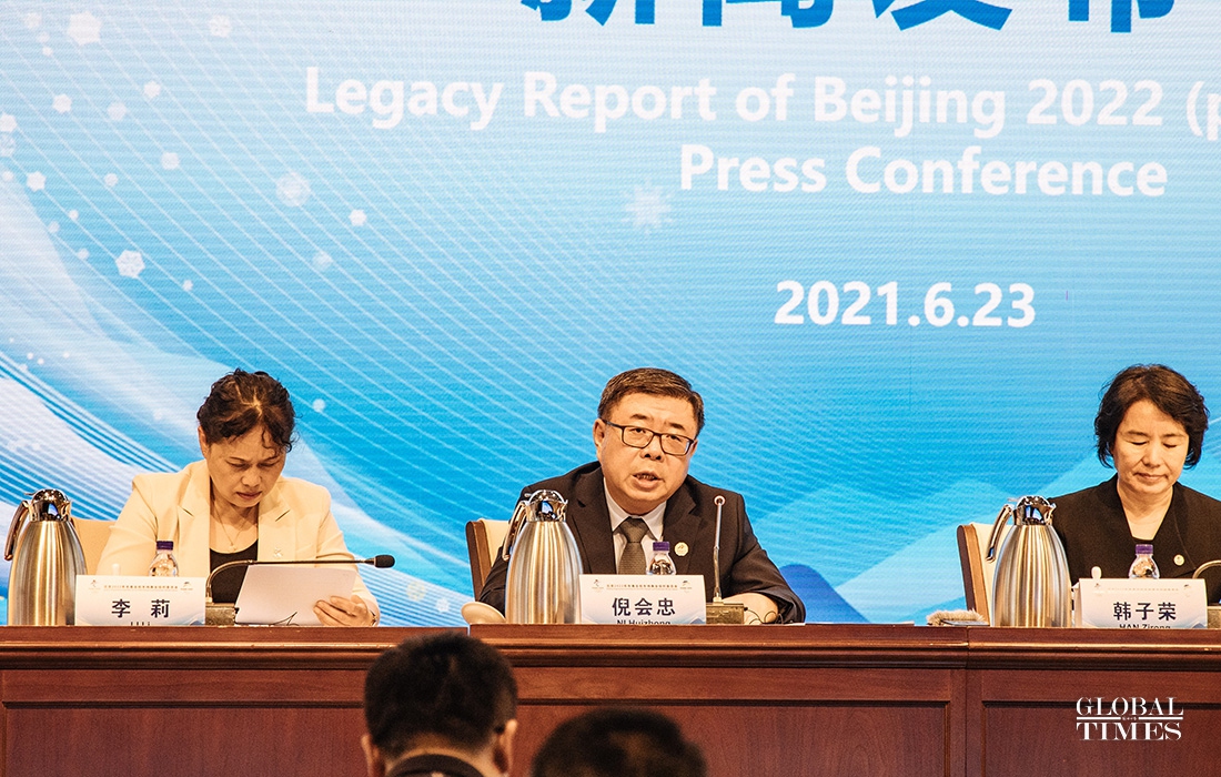 Beijing Organizing Committee for the 2022 Olympic and Paralympic Winter Games released the "Legacy Report of Olympic and Paralympic Winter Games Beijing 2022 (pre-Games)" on Jun 23. Juan Antonio Samaranch Jr, the Chairman of IOC's Coordination Commission for 2022 Beijing Olympic Winter Games, expressed his admiration for Beijing Winter Olympic legacy via a video conference. The organizing committee has paid special attention to the legacy work and carefully designed the legacy plan that focuses on sports, economy, society, culture and environment, across 7 sections and 35 industries. (Photos: Li Hao/GT)