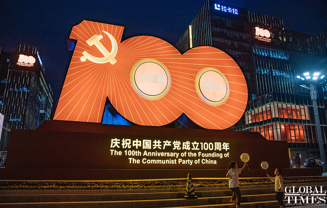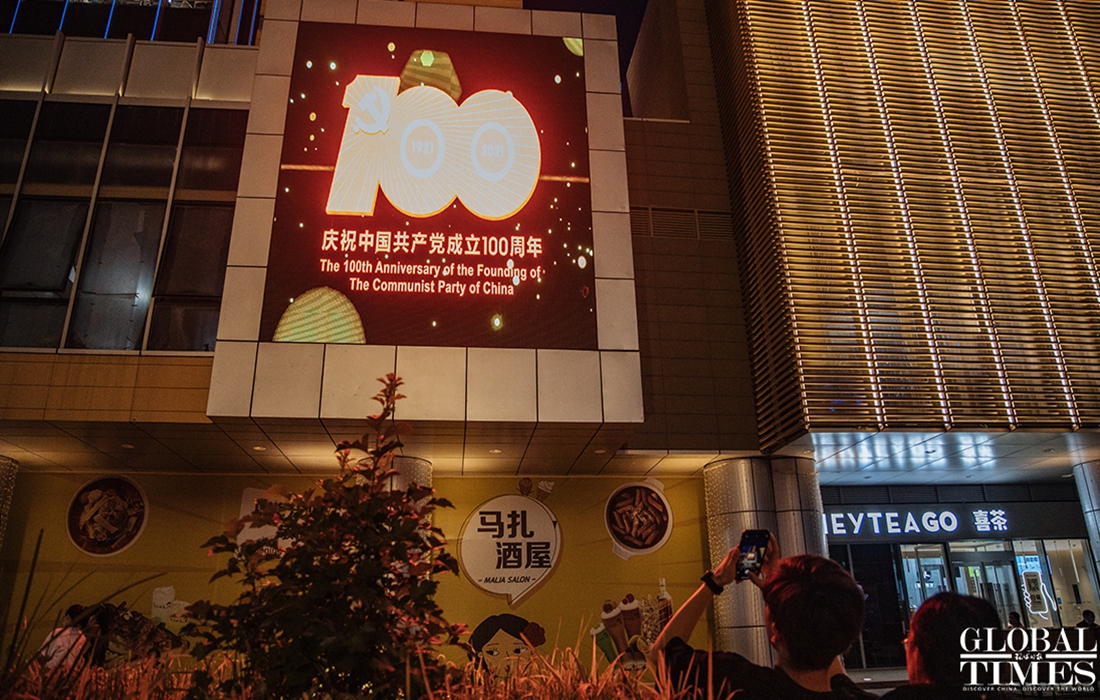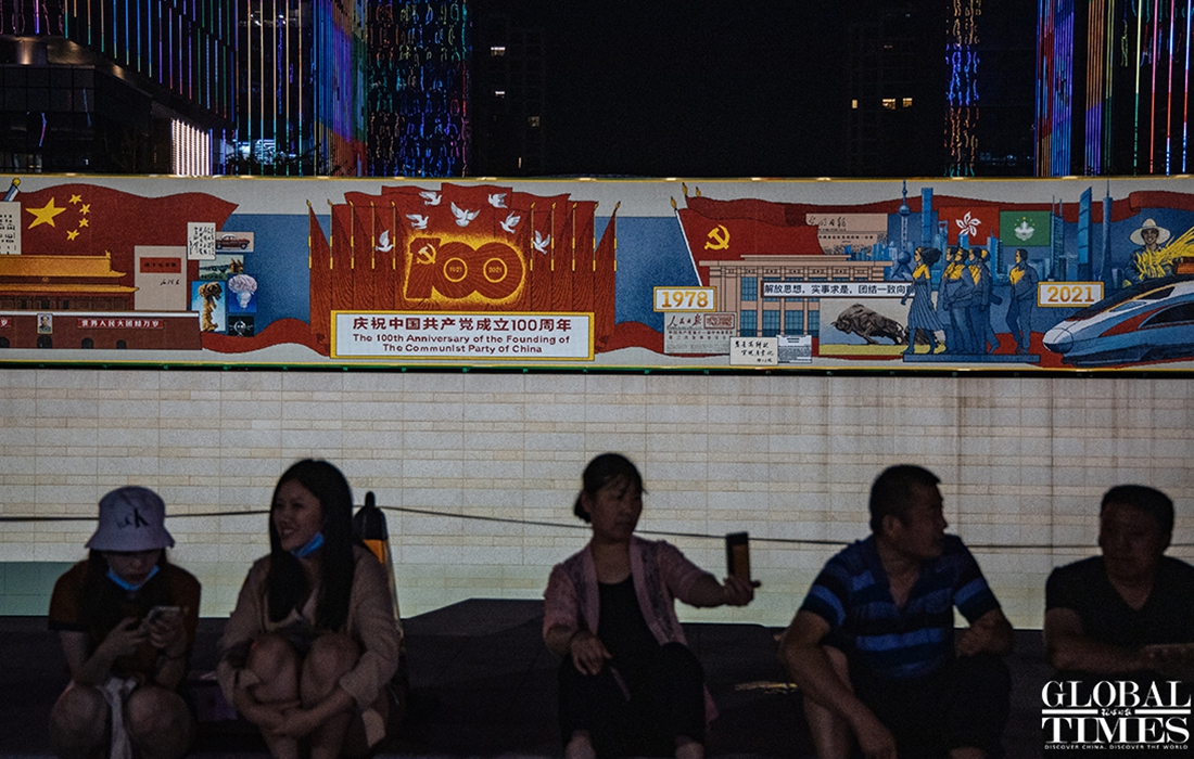 A highlight of the celebration of the 100th anniversary of the founding of the Communist Party of China, the first large-scale 3D light show was held in Beijing’s Zhongguancun Square, in Haidian district. (Photos: Li Hao/GT)