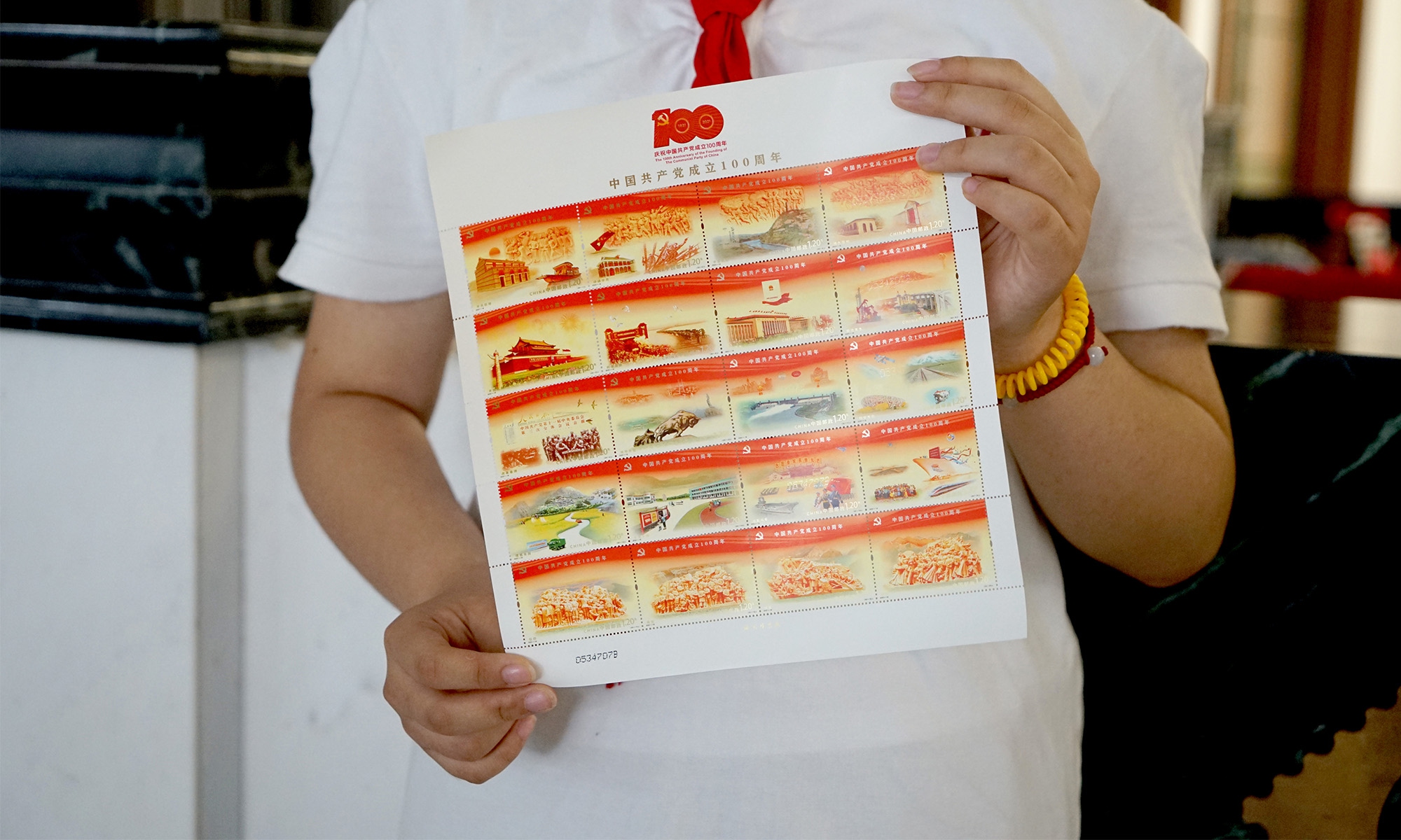 China Post issued a set of 20 commemorative stamps and a commemorative cover, revealing the 100-year journey the CPC has traveled. The stamps use red and gold as the main tones of the picture.