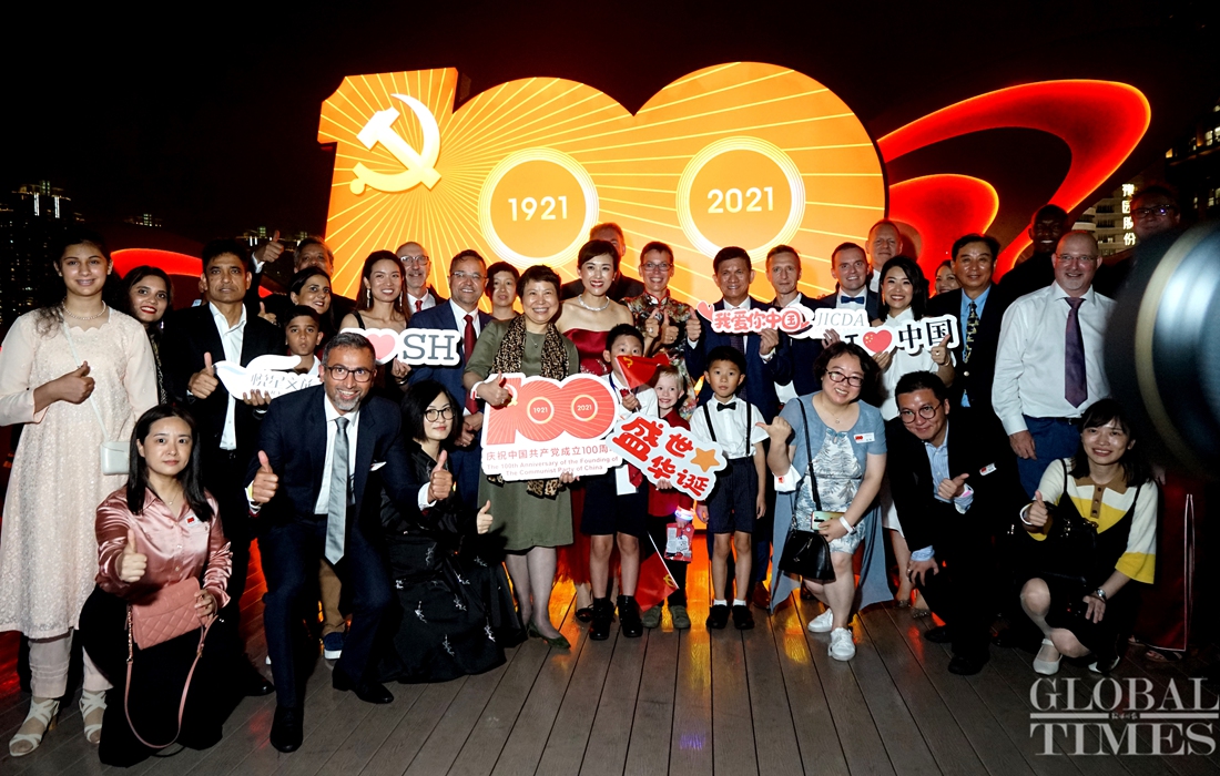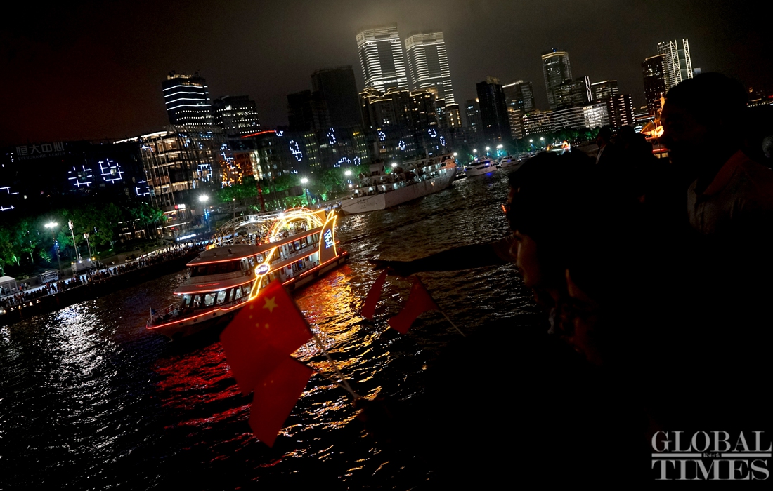 Expats in Shanghai stunned by light show in Shanghai for Party celebration Photo:Chen Xia/GT