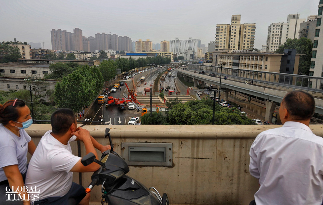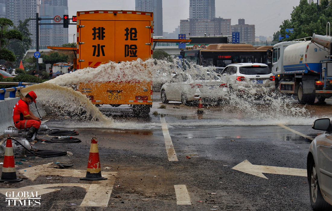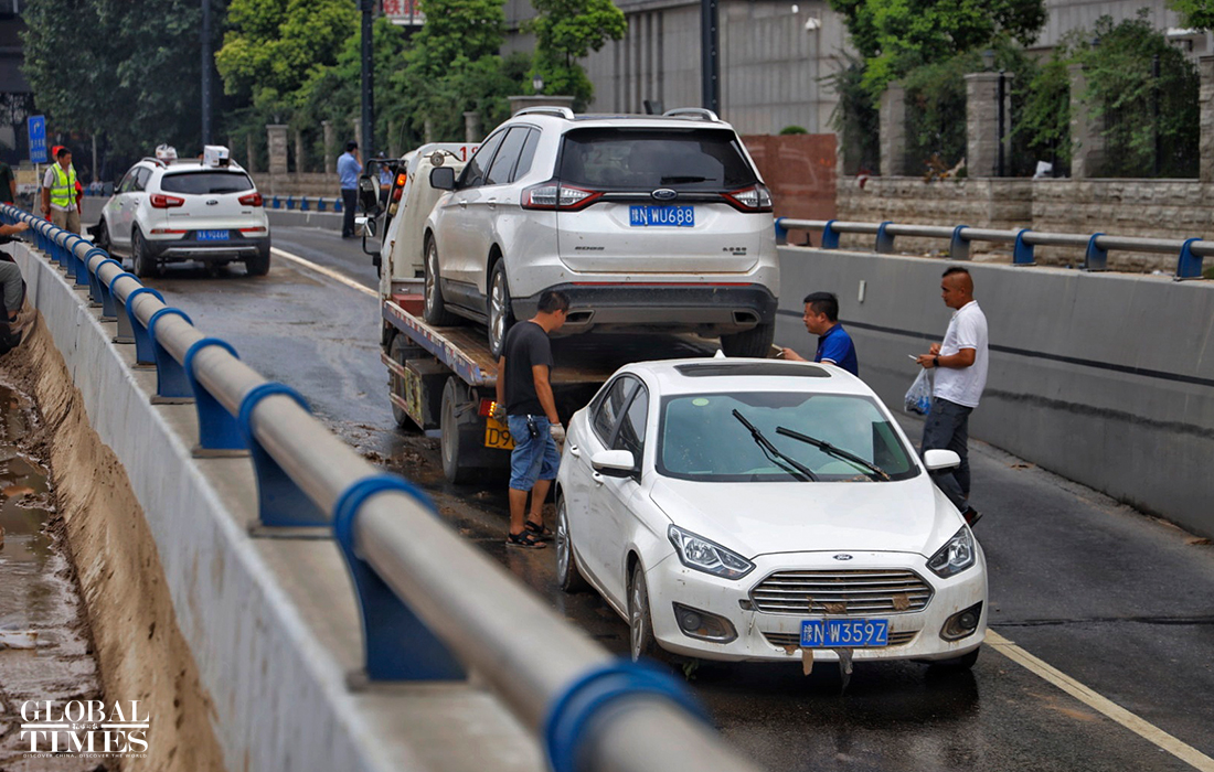Rescue workers said that the water conditions and the number of vehicles in the deepest part of the tunnel are still unclear, and it is difficult to predict whether there will be casualties. Photos: Li Hao/GT
