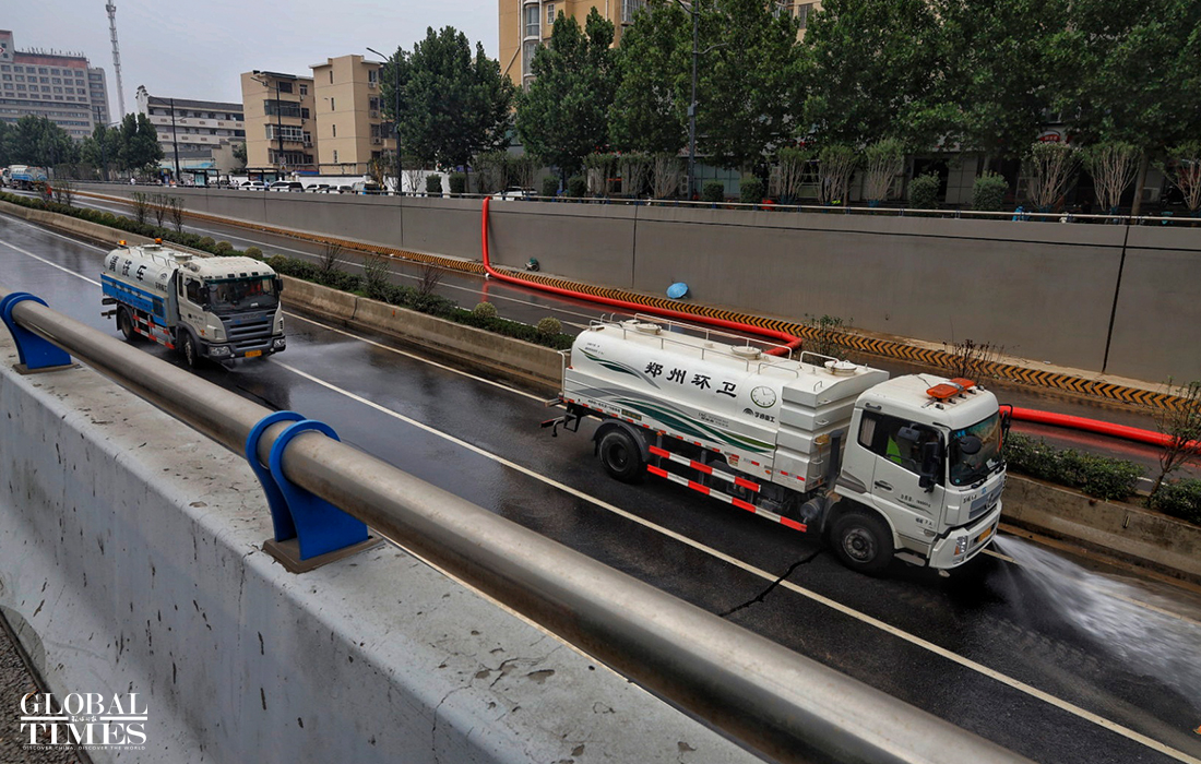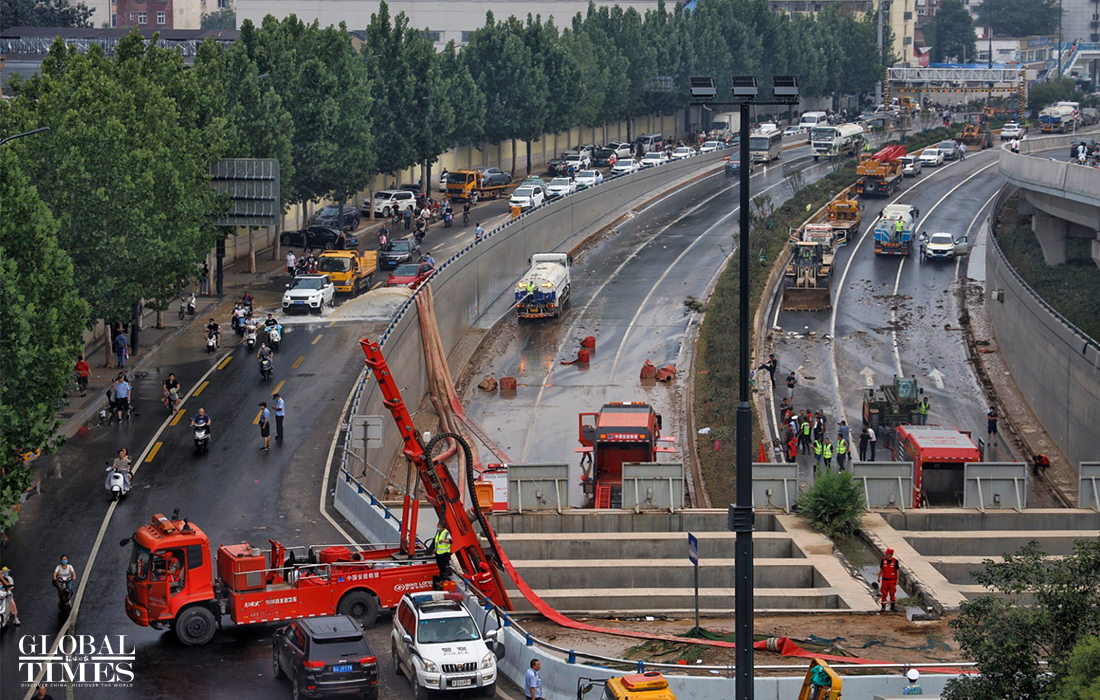 Rescue efforts including large-scale drainage operations are still under way on Friday at Jingguang Tunnel, a flooded 2-km-long underpass, where numerous vehicles have been trapped since Tuesday in Zhengzhou, Central China's Henan Province following intense downpours in the city.