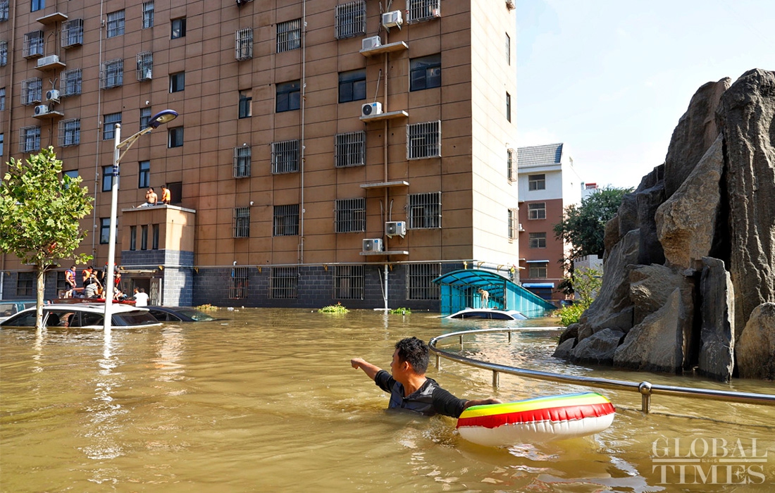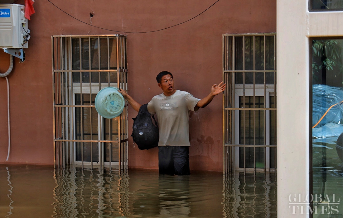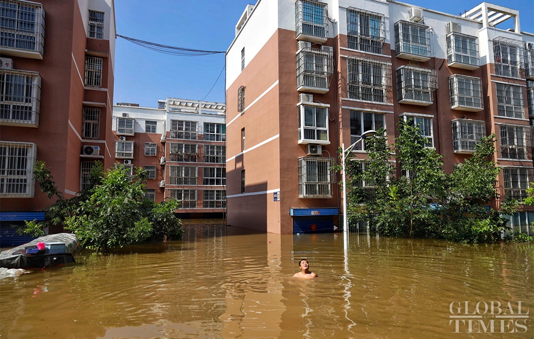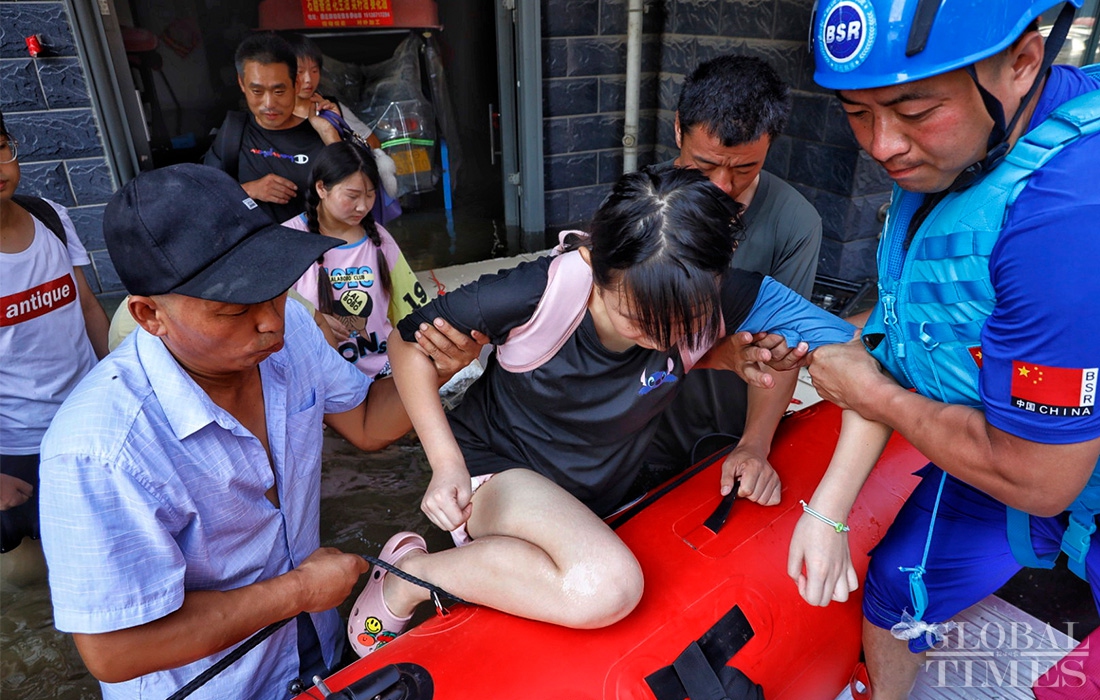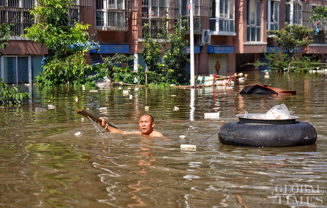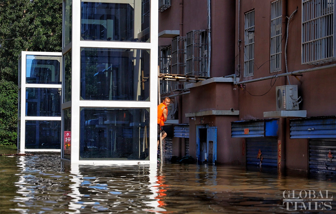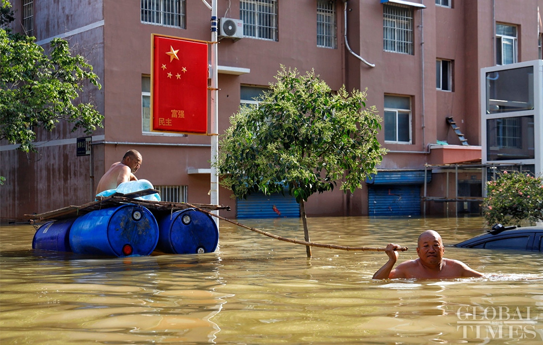 Armed police officers, soldiers and rescue teams evacuated people in Xinxiang, Henan Province, from early Saturday morning, after a canal breach flooded nearby villages. Nearly 1,000 people have joined in the rescue work. The villagers have been relocated to temporary shelters.